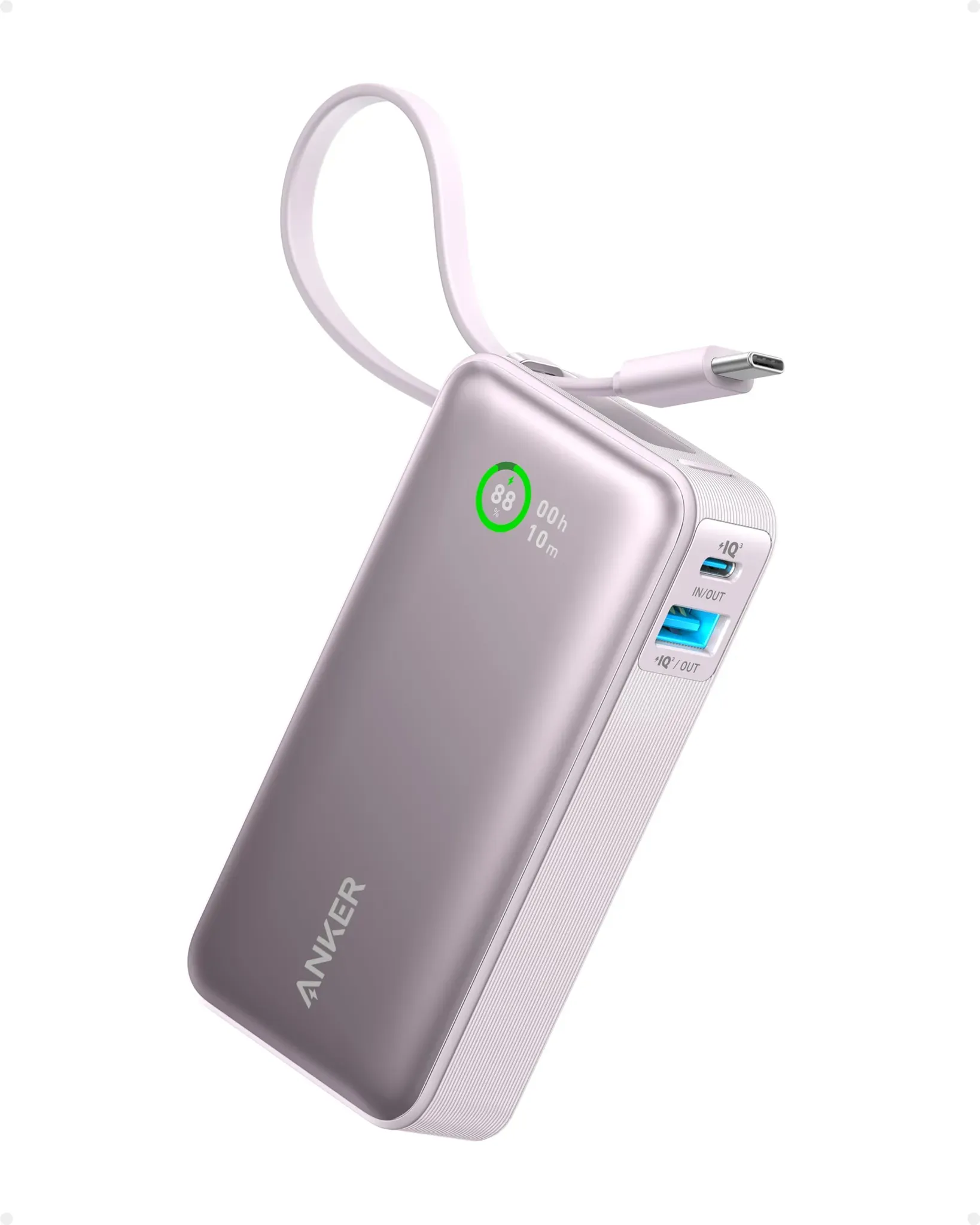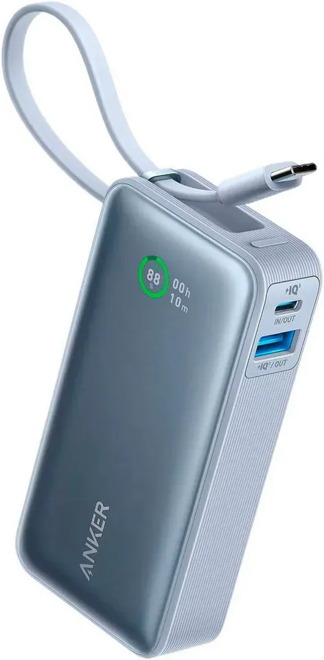 Anker - EAN: 0194644145835 - DOPPELTE SCHNELLLADUNG MIT ZWEI ANSCHLüSSEN: Erlebe High-Speed-Laden mit zwei USB-C Anschlüssen und unserer fortschrittlichen PowerIQ 3.0 Technologie, die beeindruckende 22,5W Leistung liefert. FALTBARER USB-C STECKER: Sag Kabelsalat Lebewohl und... - bei anker.com - aus Yadore Produktdaten Diese schwarze 10.000mAh Powerbank mit 30W PD und integriertem USB-C Kabel ist mit 31.99 Euro eine solide Wahl für Nutzer, die eine höhere Kapazität benötigen. ![]() ![]() Anker Nano Powerbank, 10.000mAh Powerbank mit integriertem USB-C Kabel, PD 30W Höchstleistung mit 1xUSB-C, 1xUSB-A, Für iPhone 17/16/15/14, MacBook, Galaxy, iPad, AirPods und mehr (Schwarz)