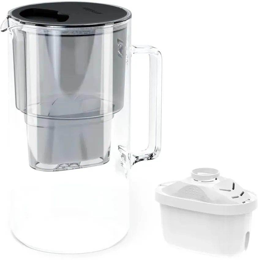 Zustand: Neu - 5,82 € / stück - Wasserfilterkartuschen Wasserfilterkartuschen für Trinkwasser - PearlCo - 7030 - EAN: 4250115270300 - œ Kompatibel zu vielen gängigen Modellen wie z. B. Brita Maxtra Plus Systemen mit PerfectFit, Brita Maxtra, AmazonBasics, Brita XL, Mavea, Style Elemaris, Marella, Aluna Cool, Fjord Cool Plus, Laica Bi-Flux, Anna Duomax œ PearlCo Wasserfilter Kartuschen enthalten Aktivkohle aus natürlichen Kokosnussschalen und lebensmittelechten Ionentauscher. Der Chlor und Kalkgehalt des Wassers wird deutlich reduziert, ebenso der Anteil an Schadstoffen wie Blei und anderen Schwermetallen œ Inbetriebnahme: Bitte die Filterkartusche im ersten Schritt für 5 Minuten wässern. Danach kann die Kartusche in den Trichter des Wasserfilters eingesetzt und nach zwei Spülvorgängen benutzt werden œ Jede einzelne PearlCo Filterkartusche wird unmittelbar vor dem Einschweißen in die Verpackungsfolie für 2 Sekunden mit 102 Grad heißem Wasserdampf sterilisiert. Feuchtigkeit in der Verpackung ist daher völlig normal und auch gewünscht œ Kaffeemaschinen, Wasserkocher und ähnliche elektrische Geräte verkalken bei der Verwendung PearlCo-gefilterten Wassers viel weniger und halten deshalb auch länger - Verkäufer: PearlCo - Ihr Wasserfilterexperte aus Köln im amazon.de Marketplace Diese Wessper Filterkanne inklusive einer Kartusche ist eine gute Einstiegslösung für alle, die einen Anna Wasserfilter suchen. ![]() ![]() Wessper Wasserfilter Kanne Schwarz Filterkanne 2,8L inkl. 1 Filterkartusche | Ersatz für Aquaphor Standard, Brita Classic, Dafi Classic Filterkartusche | Wasserfilterkanne | Reduziert Chlor Kalk