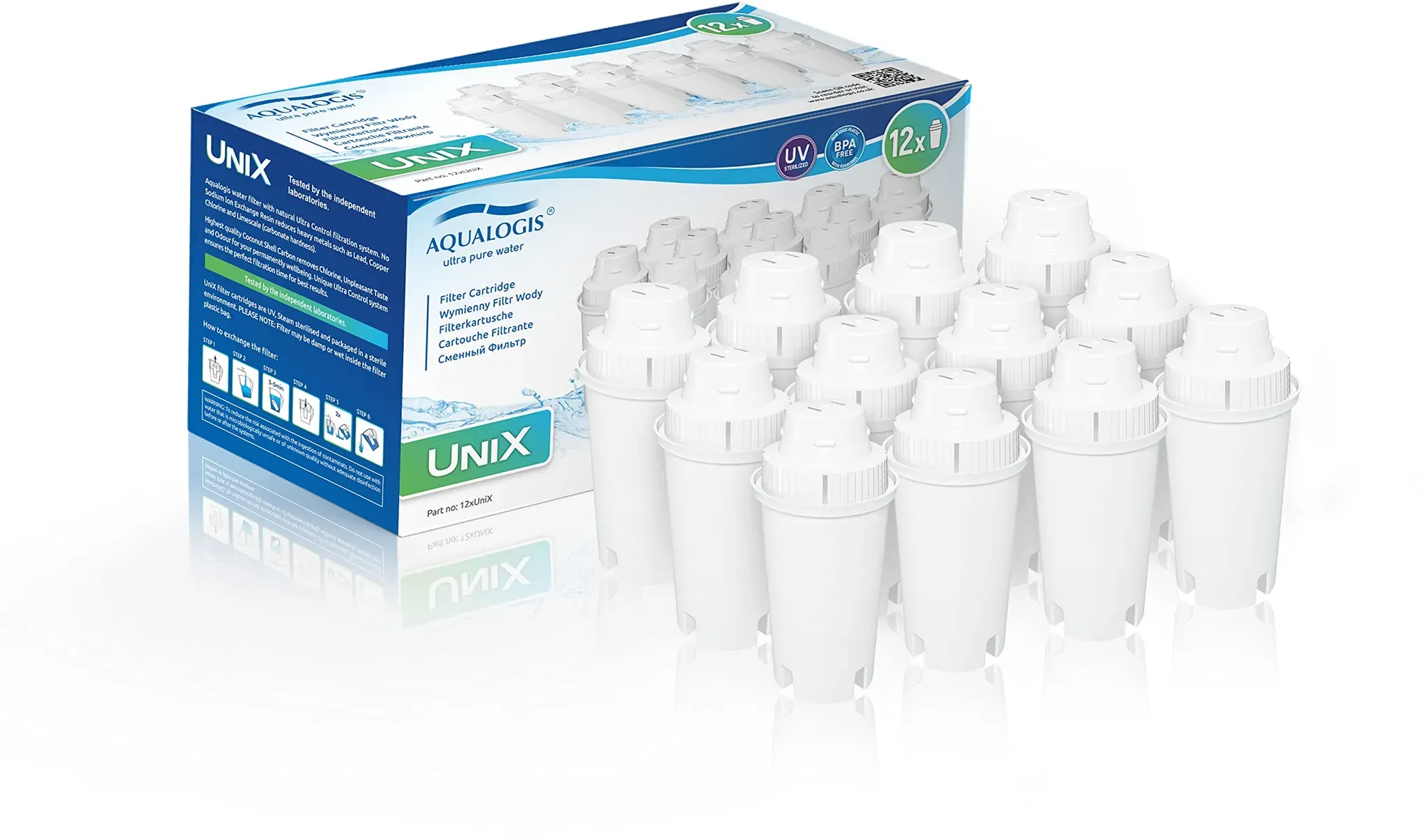 Zustand: Neu - 2,32 € / stück - Wasserfilterkartuschen Wasserfilterkartuschen für Trinkwasser - Aqualogis - ULTRA+ 12xAL-Pure+ - EAN: 5055906082228 - œ Aqualogis Pure+ Kompatibel: Funktioniert mit fast allen gängigen Modellen wie z. B. Brita Maxtra Plus, AmazonBasics, Brita XL, Mavea, Elemaris, Marella, Aluna Cool, Fjord Cool Plus, Laica Bi-Flux, Anna Duomax. Genau, was Sie brauchen! (nicht kompatibel mit Karaffen von PerfectFit) œ Das Filtergranulat aus Aktivkohle und Ionentauscher bindet organische Verunreinigungen, geschmacks- und geruchsstörende Stoffe sowie gesundheitsschädliche Schwermetalle Hygienisch verschweißte Filterpatronen mit organisch geprüftem Filtergranulat œ Wie man benutzt: nach dem Entnehmen der Patrone aus der Verpackung entfernen Sie die beiden Schutzfolien am unteren Teil. Schütteln Sie die Patrone 10 Sekunden lang. Tauchen Sie die Kartusche etwa 10 Minuten in kaltes Wasser. Setzen Sie die Patrone in die Filterkanne ein. Führen Sie zwei Spülzyklen durch, dh füllen Sie die Karaffe, filtern Sie das Wasser und entsorgen Sie es. Wiederholen Sie dann den Vorgang. Die Filterpatrone ist jetzt einsatzbereit. œ Bitte beachten Sie: Es handelt sich um ein kompatibles Ersatzteil, das nicht von Brita hergestellt oder verkauft wird. œ Damit Sie frisches und entkalktes Wasser nutzen können. Außerdem schützen Sie Ihre Haushaltsgeräte durch Nutzung eines Wasseraufbereiters dauerhaft vor Kalkablagerungen und verlängern somit auch gleich die Lebensdauer Ihrer Geräte - ... Diese Anna Ontario Wasserfilterkanne mit 5 Kartuschen ist ein praktisches Starter-Set für neue Nutzer. ![]() ![]() Anna Ontario - Wasserfilterkanne & eBay 5 Kartuschen * Beschreibung lesen