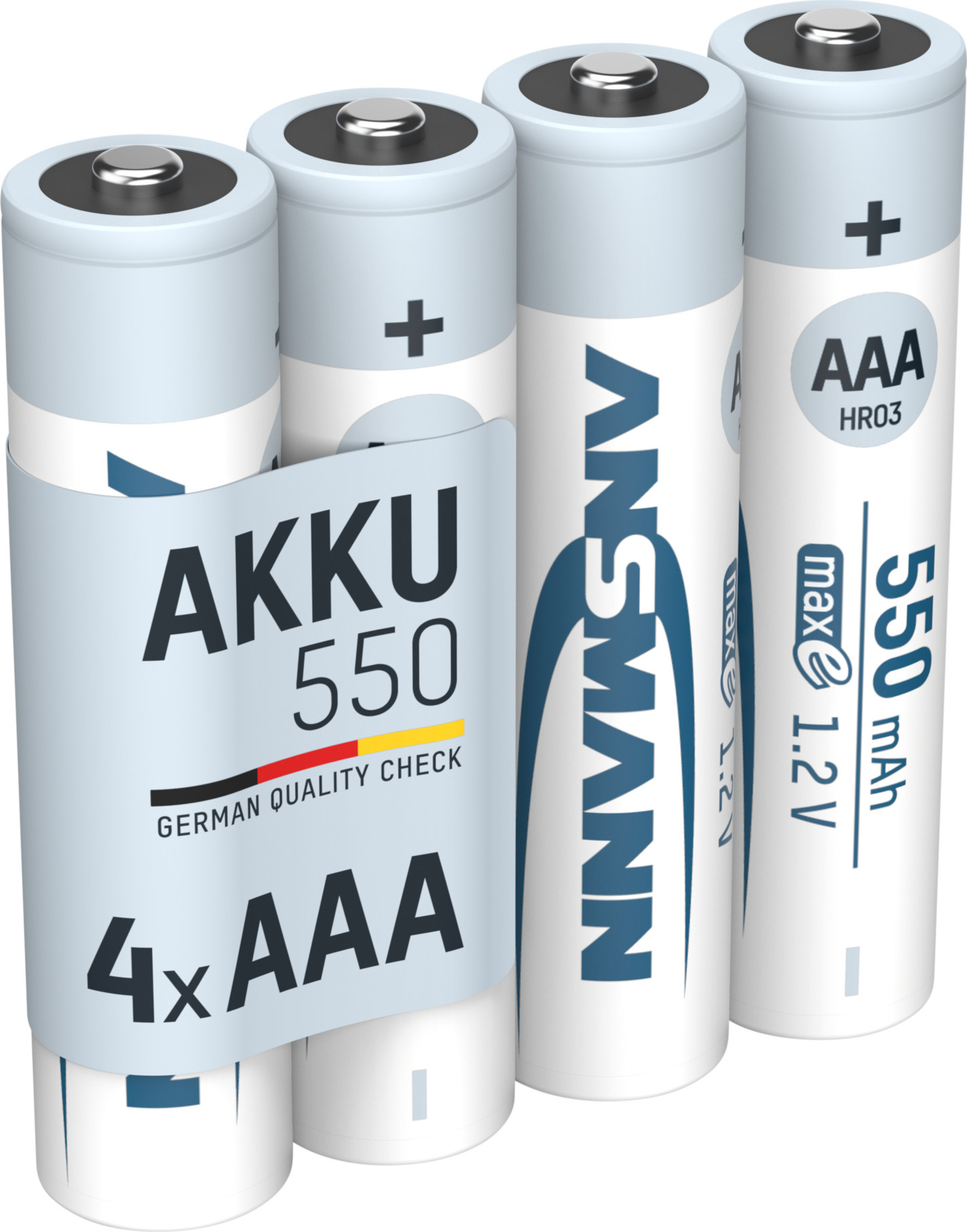 lieferbar-in 5-6 Werktagen bei dirANSMANN AG Akku AAA 550mAh Micro NiMH 1,2V – 1000x wiederaufladbar (4 Stück) Akku 550 mAh (1.2 V) silberfarben