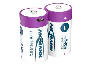 Kategorie: Batterien & Akkus - Ansmann - GTIN:4013674193998 - 2er Pack Mono D Lithium-Ionen Akku inklusive 2-fach Ladekabel, 1,5 V / Typ 6000 (min. 5400 mAh) / 12 Wh - Type C Ladung - geschützter Akku aufgrund Sicherheitsbeschaltung - 34,99 Euro bei Fotofocal.rf-webworld - gefunden von billiger.de Dieses 4er-Pack mit 8500 mAh NiMH-Akkus ist ideal für Nutzer mit höherem Bedarf und bietet eine hohe Wiederaufladbarkeit. Manomano.d e