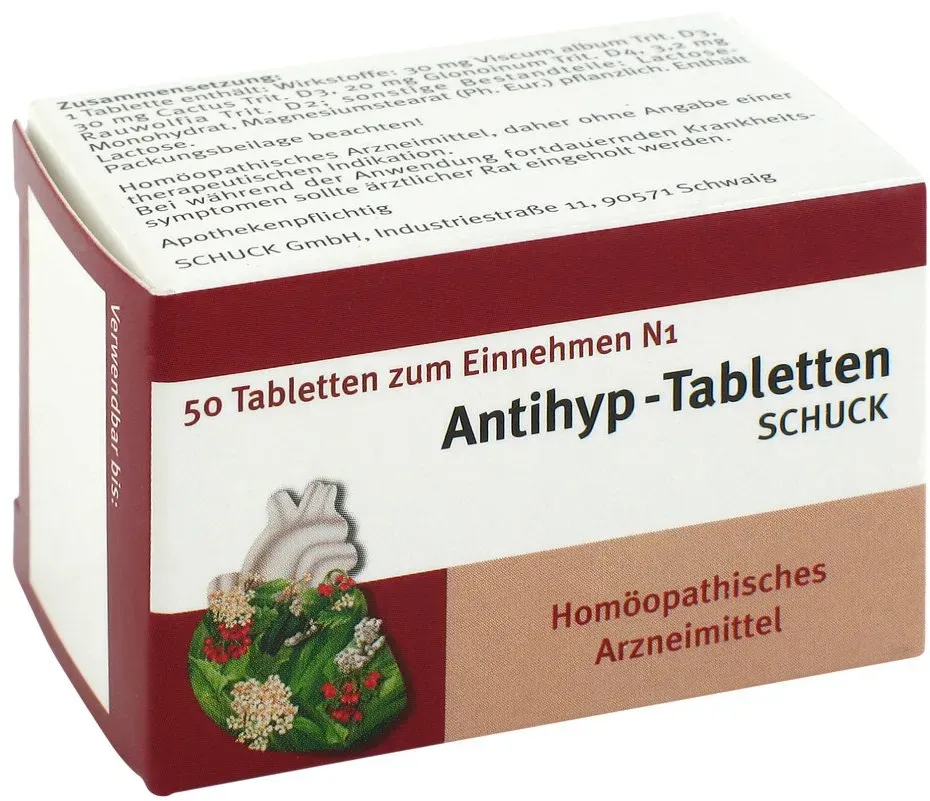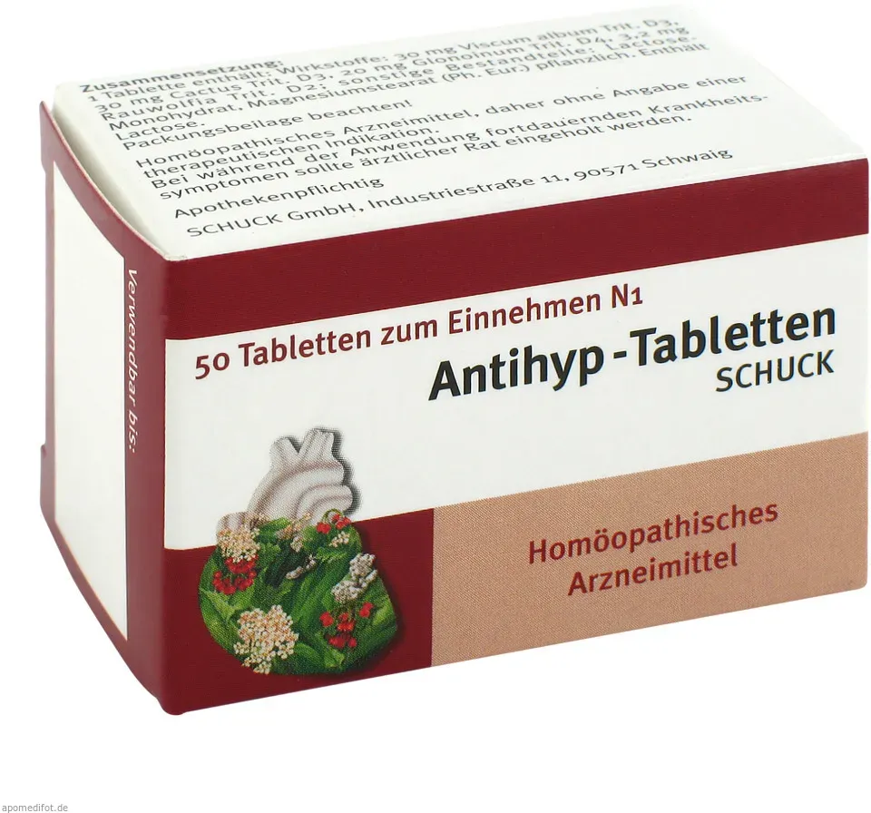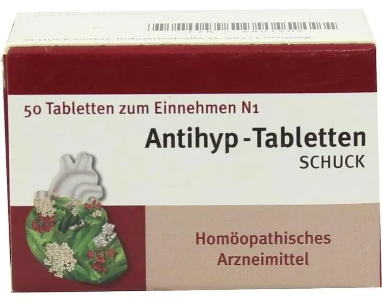 0.11 / 1 ct - Kategorie: Arzneimittel - Schuck Gmbh Arzneimittelfabrik - GTIN:4150068012098 - PZN:06801209 - 06801209: Schuck GmbH Arzneimittelfabrik - ANTIHYP Tabletten Schuck 50 St - 5,33 Euro bei ayvita.de - gefunden von billiger.de Ein beliebtes Angebot für die 50-Stück-Packung über Amazon Marketplace mit mehreren Händlern. ![]() ![]() ANTIHYP Tabletten Schuck 50 St