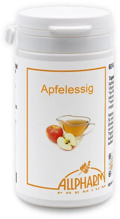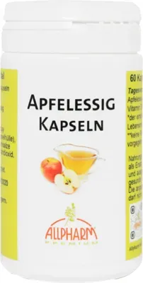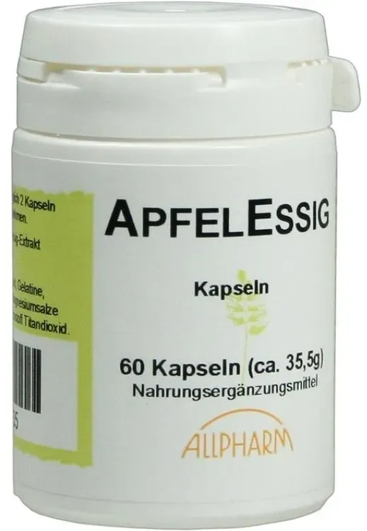 Allpharm - EAN: 4150002103356 - Apfelessig Kapseln 60 St - bei docmorris.de - aus Yadore Produktdaten Dieses Produkt ist mit 6.00 Euro eine günstige Wahl und enthält 100 Kapseln. ![]() ![]() Apfelessig Extrakt 340 mg 100 Kapseln