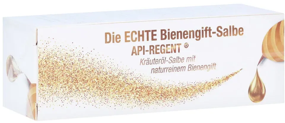 Kategorie: Arzneimittel - Schloßwald-Bienengut GmbH & Co. KG - GTIN:4260268740117 - NATURREINES BIENENGIFT FüR MUSKELN & GELENKE Die API-REGENT Bienengift-Salbe kombiniert hochwertiges, reines Bienengift mit einer perfekt abgestimmten Basis aus ätherischen ölen für wohltuende Pflege von Muskeln und Gelenken. 100% NATüRLICHE INHALTSSTOFFE OHNE ZUSäTZE Frei von chemischen Stabilisatoren, Konservierungsstoffen und künstlichen Zusätzen. Enthält Lanolin, Mandelöl, Bienenwachs, naturreines Bienengift sowie ätherische öle wie Rosmarin, Pfefferminze, Eukalyptus & Kampfer. ANGENEHM KüHLEND & HAUTFREUNDLICH Im Gegensatz zu wärmenden Salben wird API-REGENT auf der Haut als sanft kühlend empfunden ideal für entspannende Massagen nach Sport oder körperlicher Belastung. QUALITäT AUS FAMILIEN-IMKEREI IN 5. GENERATION Seit fünf Generationen Fach-Expertise aus deutscher Familien-Imkerei. Dermatologisch und klinisch getestet für höchste Qualitätsstandards. EINFACHE ANWENDUNG & SICHERHEITSHINWEISE Dünn auf die gewünschten Körperstellen auftragen und sanft einmassieren (bevorzugt mit Einmalhandschuh). Nur zur äußerlichen Anwendung! Kontakt mit Augen, Schleimhäuten und Gesicht vermeiden. Hände gründlich mit Seife reinigen. - 28,29 Euro bei Amazon Marketplace Health & Personal Care - gefunden von billiger.de apo.com bietet die Salbe zu einem soliden Preis an, was eine gute Option für den Online-Kauf darstellt. ![]() ![]() Schloßwald-Bienengut GmbH & Co. KG Die Echte Bienengift-salbe Api Regent