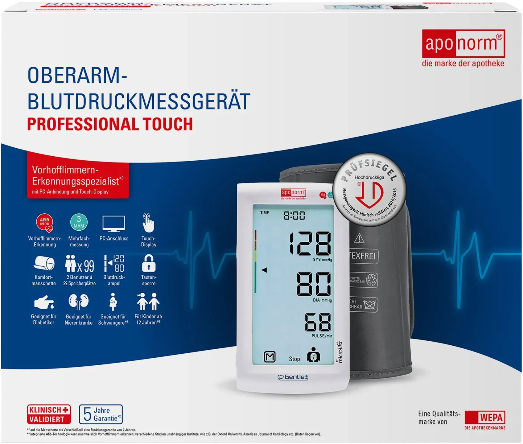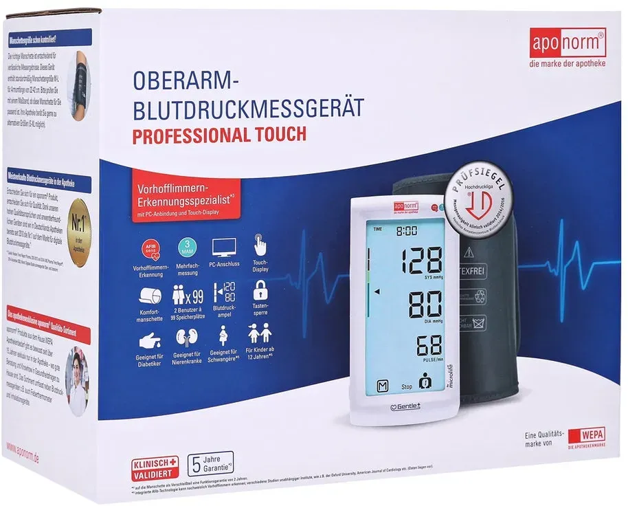 Zustand: Neu - Digitale Oberarm-Blutdruckmessgeräte - Aponorm WEPA Apothekenbedarf GmbH & Co. KG - 15204725 - EAN: 4150152047258 - PZN-15204725 1 St freiverkäuflich - Verkäufer: esando im amazon.de Marketplace juvalis.de Aponorm PROFESSIONELL Touch Blutdruckmessgerät Oberarm