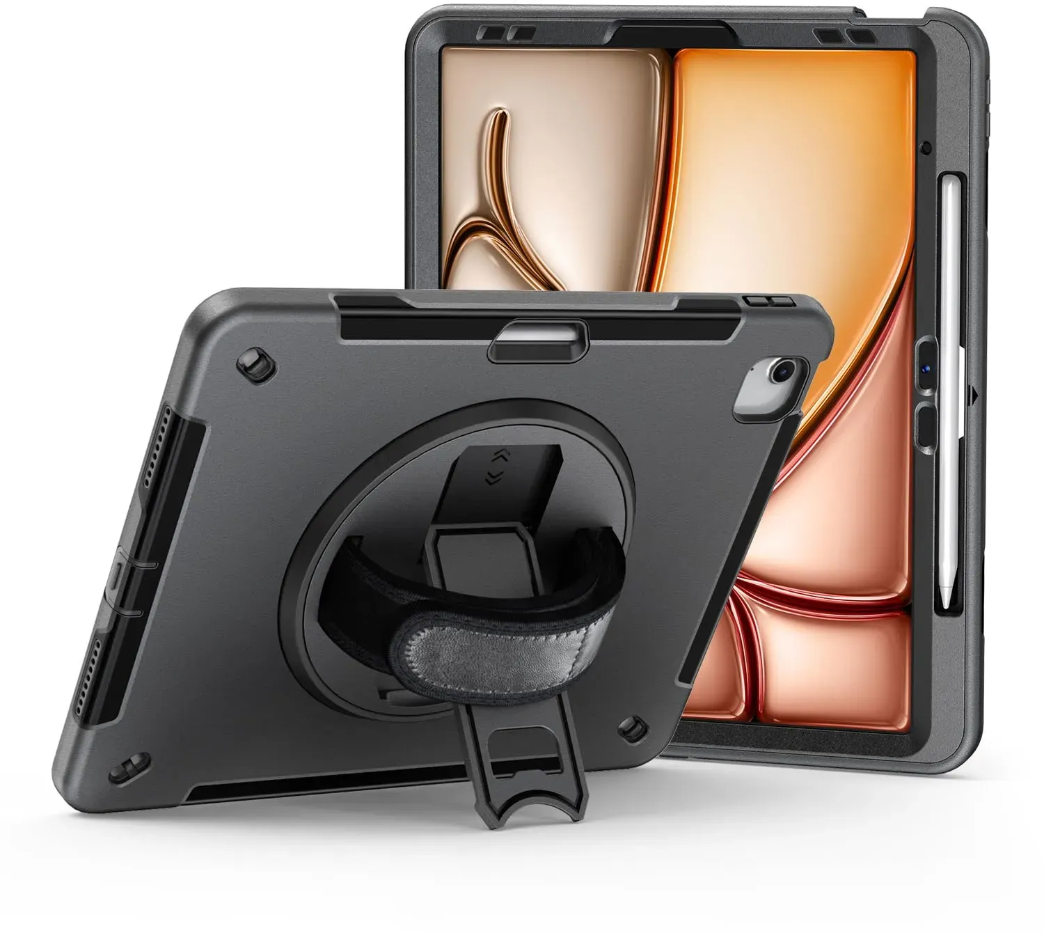 Kategorie: Zubehör für Tablet PCs - BlueBuilt - GTIN:8720627625975 - Schütze dein Tablet mit dem BlueBuilt Apple iPad Air 13 Zoll (2024) / Pro 12,9 Zoll (2025/2024) Tri-Fold Book Case Schwarz vor Kratzern. Dieses Book Case bedeckt sowohl das Display als auch die Rückseite deines Tablets. Mit der Frontklappe lässt sich das Tablet aufrecht hinstellen. So musst du dein Tablet nicht die ganze Zeit festhalten, sondern schaust dir bequem einen Film an. Dank des Magnetverschlusses geht die Hülle nicht einfach auf. Daher verstaust du dein Tablet bedenkenlos mit deinen Schlüsseln oder anderen scharfen Gegenständen in deiner Tasche. Dank der Auto-Wake-Funktion schaltet sich dein Tablet sofort ein, wenn du die Hülle aufklappst. Die Hülle ist maßgefertigt für das Apple iPad Air 13 Zoll (2024) sowie das Apple iPad Pro (2025/2024) 12,9 Zoll und passt daher genau um dein Tablet. Zudem erhältst du auf diese BlueBuilt Hülle fünf Jahre . - 25,99 Euro bei coolblue - gefunden von billiger.de Diese Hülle mit drehbarer Handschlaufe und Kickstand ist ideal für Nutzer, die ihr iPad oft in der Hand halten oder aufstellen. ![]() ![]() honju FIT Rugged Kickstand/Handstrap Case kompatibel mit Apple iPad Air 13" (2025 & 2024) / Pro 12,9" (2022-2018) (Drehbare Handschlaufe, Apple Pencil Halterung) schwarz