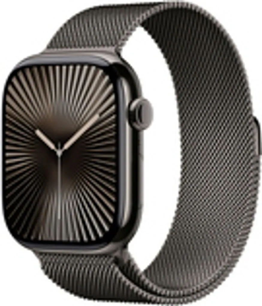 Armbanduhren Mode Uhren Schmuck - - Praktisches Accessoire - die Apple Watch Series 10 46 mm Aluminium (GPS+Cellular) Sportarmband S/M schwarz, diamantschwarzMisst nicht nur die Zeit, sondern auch Gesundheitswerte, erinnert an Termine, zeigt Kurznachrichten an und kann Sie bei Ihrer Work-Life-Balance unterstützen - die Apple Watch Series 10 46 mm Aluminium (GPS+Cellular) Sportarmband S/M schwarz, diamantschwarz. Für einen gesunden Geist ist Bewegung unerlässlich - dieses Modell zeigt Ihnen stets Ihren Fort-Schritt an und kann Sie dazu animieren, sich mehr zu bewegen.Armband aus FluorelastomerDas Armband aus Fluorelastomer sieht nicht nur gut aus, sondern ist auch komfortabel zu tragen, pflegeleicht und unempfindlich. Optimal für den täglichen Gebrauch. Hier erhalten Sie ein Accessoire in einem hübschen Schwarz, diamantschwarz. Das Band hat eine Länge von 13,0 - 18,0 cm.Wichtige Informationen zum Akku18 Std beträgt die Laufzeit des Akkus. Laden können Sie den Akku über Induktion.Viele hilfreiche FunktionenDiese praktische Funktionen erhalten Sie mit der Apple Watch Series 10 46 mm Aluminium (GPS+Cellular) Sportarmband S/M schwarz, diamantschwarz:Schlafanalyse: Sie bekommen die Möglichkeit, Ihre Schlafphasen zu analysieren und zu optimieren.Pulsmessung: Der Puls ist ein Gesundheitsindikator und kann mit Hilfe des Modells gemessen werden. Nutzen Sie die Pulsmessung z.B. beim Sport, um einen Einblick in die Trainingsintensität zu bekommen. Somit können Sie Ihr Training steuern ... Dieses Angebot ist empfehlenswert, da es eine robuste 46 mm Apple Watch Series 10 mit Titangehäuse und GPS+Cellular-Funktion für anspruchsvollere Nutzer bietet. ![]() Apple Watch Series 10 46 mm Titan (GPS+Cellular) Sportarmband M/L schwarz