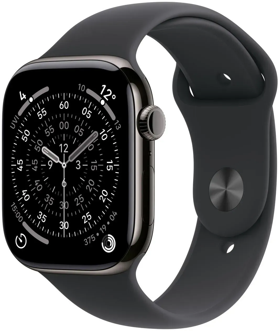 Auf Lager, sofort versandfertig Lieferzeit 1-2 WerktageApple Watch Series 11 Titan Schiefer (GPS + Cellular) 46mm (Sportarmband Schwarz) S/M