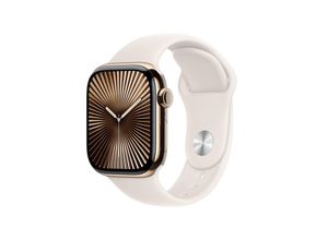 keine Angabe keine Angabe in_stockApple Watch Series 10 Titan 42 mm (2024) GPS + Cellular Gold Sportarmband S/M Polarstern - Refurbished