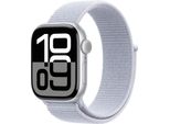 keine Angabe Nur noch 1 auf LagerApple Watch Series 10 (GPS 42 mm) Smartwatch mit Aluminiumgehäuse in Silber und Sport Loop in Blaue Wolke (One Size). Fitnesstracker, EKG App, Always-On Retina Display, CO? neutral