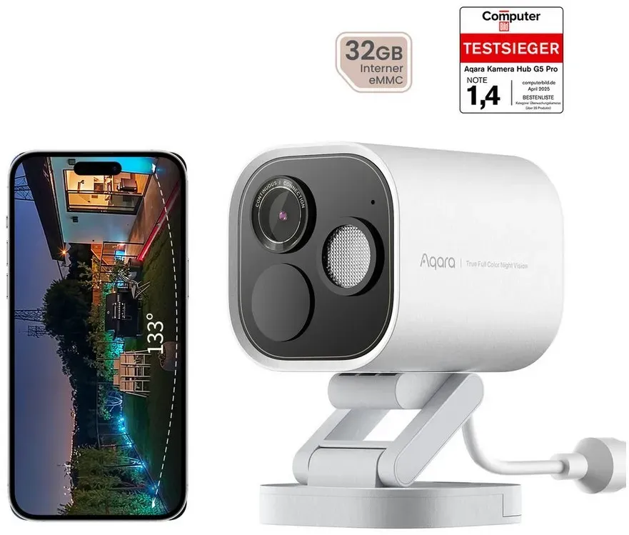 lieferbar-in 2-3 Werktagen bei dirAqara überwachungskamera G5 Pro (PoE), 4MP Kamera-Hub (Nachtsicht in Echtfarben, Zigbee- und Thread-Hub, 32G lokale eMMC-Speicher, Lokale Erkennung) weiß