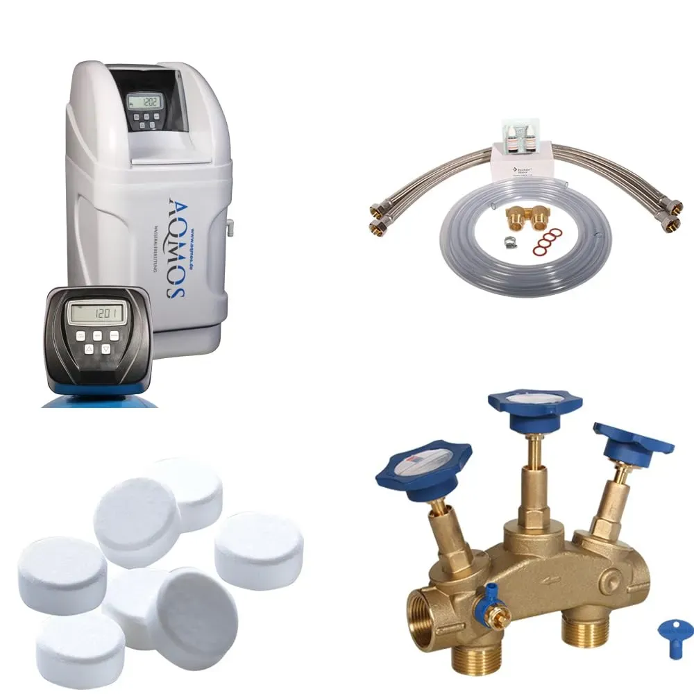 Zustand: Neu - Wasserfilter & Enthärter - AQMOS Wasseraufbereitung Aqmos Wasseraufbereitung - CM32 AQAM-Monat-CM-32 - EAN: 0714637224028 - Die Wasserenthärtungsanlage von Aqmos besticht durch ihre hochwertige Qualität und sorgt für ein kalkfreies zu Hause. Der Wasserenthärter ist effektiv, kompakt und besonders einfach zu handhaben Die Wasserenthärtungsanlage von Aqmos besticht durch ihre hochwertige Qualität und sorgt für ein kalkfreies zu Hause. Der Wasserenthärter ist effektiv, kompakt und besonders einfach zu handhaben Die Vorteile der Entkalkungsanlage liegen auf der Hand. Deutlich weniger Kalkflecken an Waschbecken, Armaturen und anderen sanitären Anlagen. Somit haben Sie deutlich weniger Putzaufwand als zuvor Die Enthärtungsanlage ist optimal geeignet für Haushalte bis zu 3 Personen und enthärtet bis zu 3.200 Liter Wasser pro Regenerationszyklus. Die Entkalkungsanlage Aqmos CM-32 funktioniert mit Hilfe des Ionenaustausch Verfahrens und tauscht die ?Härtemineralien? Calcium (Ca2+) und Magnesium (Mg2+). Somit wird kalkfreies Wasser rt Bei der Wasserenthärtungsanlage müssen Sie lediglich alle paar Monate das Salz nachfüllen. Eine Salzfüllung reicht ganze 3-4 Monate. - Verkäufer: AQMOS Wasseraufbereitung im amazon.de Marketplace ![]() ![]() Aqmos Wasseraufbereitung Aqmos CM-32 Wasserenthärtungsanlage im Set mit Montageblock und 100kg Regeneriesalztabletten | Wasserenthärter für Haushalte bis zu 3 Personen | Entkalkungsanlage, Antikalkanlage für weiches Wasser