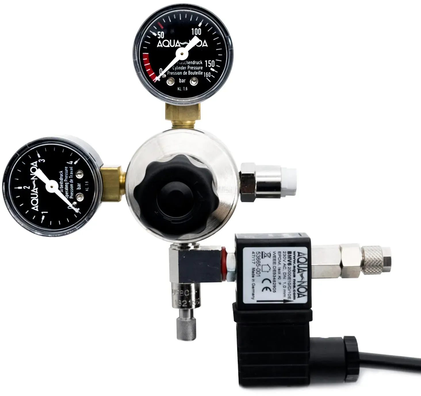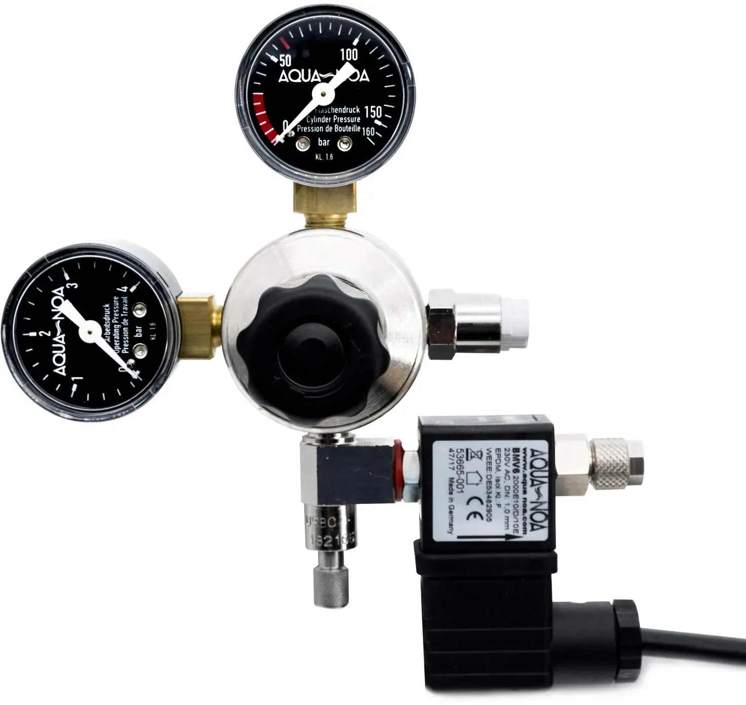 Kategorie: Sanitärinstallation - Aqua-Noa - GTIN:4260453020895 - Profidruckminderer mit 2 Manometern für Aquaristik-CO2-Mehrwegflaschen mit integrierten Magnetventil zur Nachtabschaltung und Rückschlagventil europäisches Markenfabrikat mit Feinnadelventil zur einfachen Einstellung der CO2 Zufuhr und Arbeitsdruck Einstellschraube passt für alle üblichen CO2-Mehrwegflaschen W21,8x1/14' - 114,89 Euro bei Amazon Marketplace Lawn & Garden - gefunden von billiger.de Der Profi MVR bietet eine hochwertige Lösung mit Magnetventil und Rückschlagventil für maximale Sicherheit und Komfort. ![]() ![]() AQUA-NOA CO2-Druckminderer Profi MVR