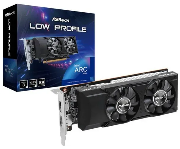 Sparkle - EAN: 4711342290801 - Grafikkarte, Intel Arc A310 (Core clock 1000 MHz), 6 Xe Kerne, 4GB GDDR6 (Memory clock 15.5 GHz) - 64-bit, PCI-Express 4.0 x16 (x8 mode), Low Profile, 2 x DisplayPort 2.0 (Mini DisplayPort) / 1 x HDMI 2.0 Verbindungen, empfohlenes Netzteil: 350 Watt, kurze Länge: 156mm, PCI-Port-Breite: 1 slots, Sparkle Single Slot Fan low noise kühler - mit Lüftermodus mit Null U/min (bei niedriger Temperatur), modell-Nr: SA310C-4G - bei proshop.de - aus Yadore Produktdaten Galaxus bietet die ASRock Intel Arc A310 LP ITX Grafikkarte zu einem guten Preis an. ![]() ASRock Intel Arc A310 LP ITX (4 GB), Grafikkarte