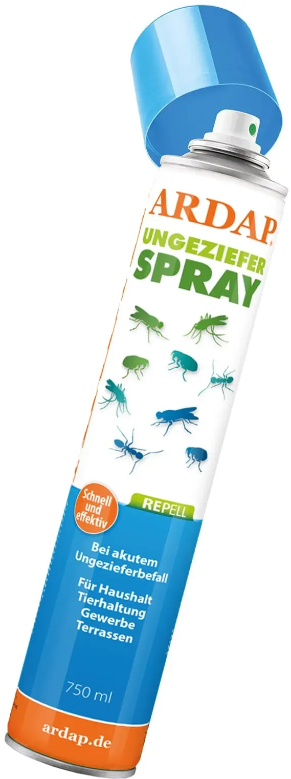 Ardap ungezieferspray 750 ml META PreisvergleichMit dem Meta-Preisvergleich suchen Sie gleichzeitig bei den großen Preisvergleich Portalen!Jetzt live Suche nach ardap ungezieferspray 750 ml starten! Ardap ungezieferspray 750 ml KaufberatungWas ist ARDAP Ungezieferspray 750 ml?ARDAP Ungezieferspray ist ein bewährtes Insektizid zur Bekämpfung und Abwehr von Ungeziefer wie Fliegen, Ameisen, Flöhe, Spinnen, Silberfischchen, Milben, Motten, Schaben, Käfer und mehr[1][3][8]. Es wird sowohl im Haushalt, in der Tierhaltung, im Gewerbe als auch auf Terrassen eingesetzt[3][5]. Die Produktlinie umfasst verschiedene Varianten, darunter das ARDAP Repell Ungezieferspray (mit natürlichen Wirkstoffen) und das ARDAP Pro Ungezieferspray (Original, mit Sofort- und Langzeitwirkung)[3][9]. Wichtige Produktmerkmale und Anwendungshinweise