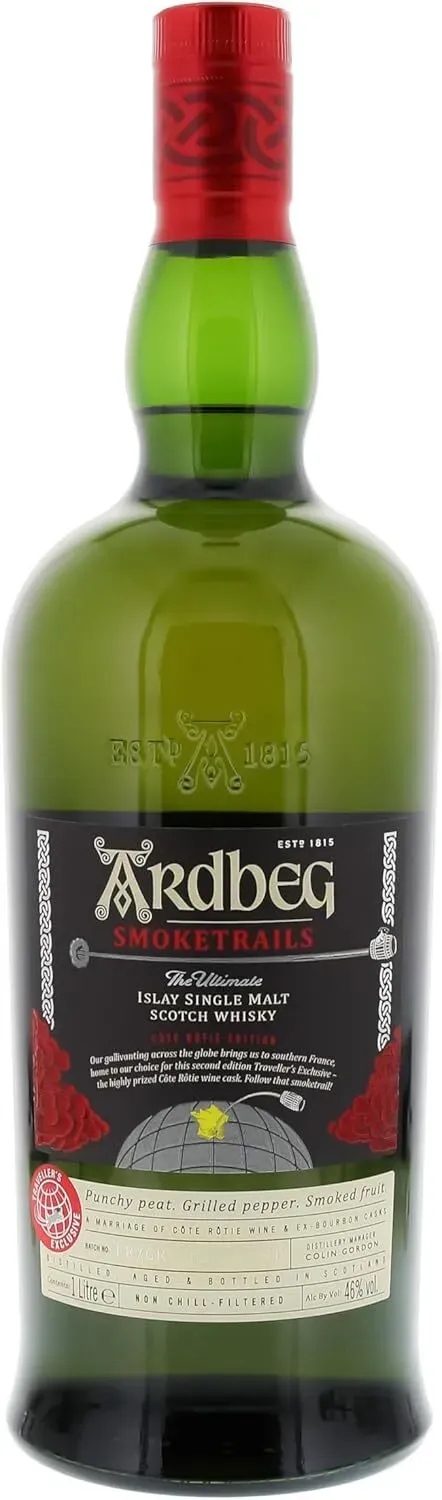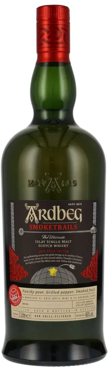 Verfügbarkeit: Auf Lager - 98,88€/l - Kategorie: Whisky - Ardbeg - GTIN:5010494982527 - Die zweite Abfüllung der Smoketrails-Serie reifte in Bourbon & Côte Rôtie Fässern. Abgefüllt mit 46,0 % vol in der 1,0-Liter Flasche bietet der Whisky eine schöne Verbindung der typischen Ardbeg-Noten mit den fruchtigen Nuancen der Weinfässer. - 98,88 Euro bei Whiskyfass - gefunden von billiger.de Diese Travel Retail Edition ist zu einem fairen Preis erhältlich und bietet eine spezielle Abfüllung, die oft nur im Reisehandel zu finden ist. ![]() ![]() Ardbeg Smoketrails - Travel Retail - Islay Single Malt Whisky