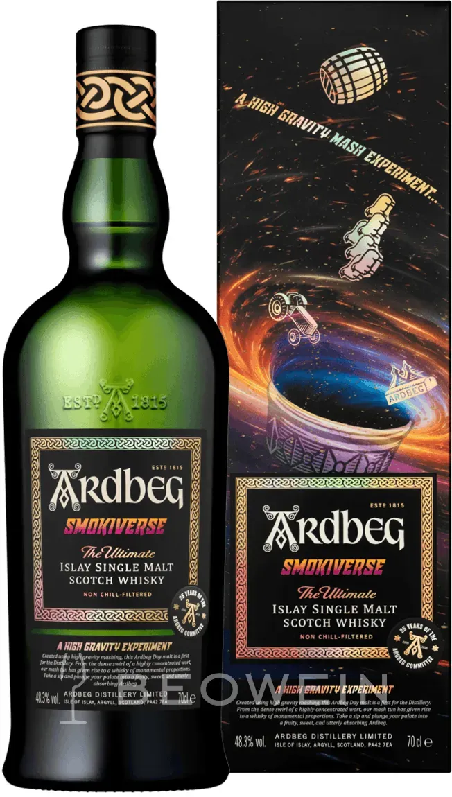 7 Händlerangebote bei billiger.de - Kategorie: Whisky - Ardbeg - Wenn Ardbeg die Grenzen des Bekannten verlässt, entsteht mehr als ein Whisky es entsteht ein neues Universum. Der Ardbeg Smokiverse ist genau das: eine intergalaktische Sonderedition, die auf dem Planeten Islay geboren wurde, aber weit darüber hinaus denkt. Entstanden für den legendären Ardbeg Day und in limitierter Menge abgefüllt, repräsentiert dieser Single Malt die wilde Seite der Marke mit kräftigem Rauch, fantasievollen Aromen und einer Reife, die Raum und Zeit durchquert.Kosmischer Ursprung die Geburt des SmokiverseDie Inspiration zum Smokiverse stammt aus einer alternativen Whiskygalaxie, in der Torf nicht nur ein Brennstoff, sondern eine Energiequelle ist. In dieser Welt ist Rauch allgegenwärtig jedoch vielschichtig, verspielt und voller überraschungen. Der Smokiverse wurde aus stark getorftem Malz destilliert und reifte in einer geheimnisvollen Kombination aus unterschiedlichen amerikanischen Eichenfässern, deren genaue Herkunft nicht verraten wird. Das Ergebnis: ein wilder, dunkler, würziger Ardbeg, wie geschaffen für Fans des Außergewöhnlichen.Sensorik rauchige Galaxien und würzige NebelNase: Intensiver Rauch, verwoben mit Noten von Menthol, schwarzem Pfeffer, Lavendelhonig, Zitronenzeste und kalter Asche. Im Hintergrund: getrocknete Kräuter, geröstete Ananas, verkohltes Holz und ein Hauch von Metall.Gaumen: Der erste Schluck ist eine Explosion. Torfrauch breitet sich aus wie ein Nebel über einem ... ![]() ![]() Ardbeg Smokiverse 0,7 l