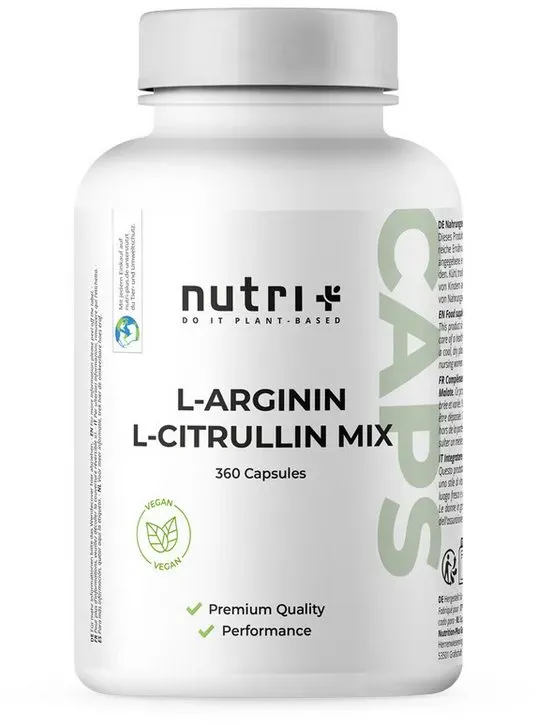6 Händlerangebote bei billiger.de - Kategorie: Sportnahrung - Nutri + - ï¸ HöCHSTE DOSIERUNG: 100% reines & ultrafeines L Citrulline Malate DL 2:1 und L-Arginine Base - höchste Reinheit und beste Bioverfügbarkeit - Aminosäure für Männer, Frauen & Sportler - ohne unnötige Zusatzstoffe ï¸ QUALITäT: Pflanzlich - Glutenfrei - Laktosefrei - ohne Aspartam, Süßstoffe, Aromen, Milcheiweiß, Farbstoffe oder Konservierungsstoffe - Amino Nahrungsergänzungsmittel ohne Magnesiumsalze ï¸ KRAFTSPORT & GYM WORKOUT: Nutri-Plus L-Citruline mit Malat + Arginine Hydrochlorid Ultrapure Caps Packung - pflanzlich - beliebtes Supplement als Pre-Workout-Booster bzw. veganer Pump-Booster ï¸ PRODUKTSICHERHEIT: Premiumqualität von Ernährungswissenschaftlern entwickelt - in Deutschland nach strengsten Qualitätsstandards produzierte Nahrungsergänzung / Sportnahrung - ISO 9001, HACCP und GMP - Einweg PET-Dose ï¸ ANWENDUNG: 8 L-Citrulline Ultra Pure HPMC Capsules mit 300ml Wasser ca. 30-45 Min. vor dem Training einnehmen - unser L-Citruline Supplement passt auch perfekt in Kombi mit unserem Pre-Workout V-Booster - GTIN:4260351436316 NATURE LOVE bietet hier eine große Packung veganer Kapseln mit hoher Reinheit und deutscher Produktion. ![]() ![]() NATURE LOVE® L-Arginin Base mit Citrullin - 365 Kapseln - Hochwertiges pflanzliches Arginin in BASE Form mit 99,7+% Reinheit - Hochdosiert, vegan, in Deutschland produziert