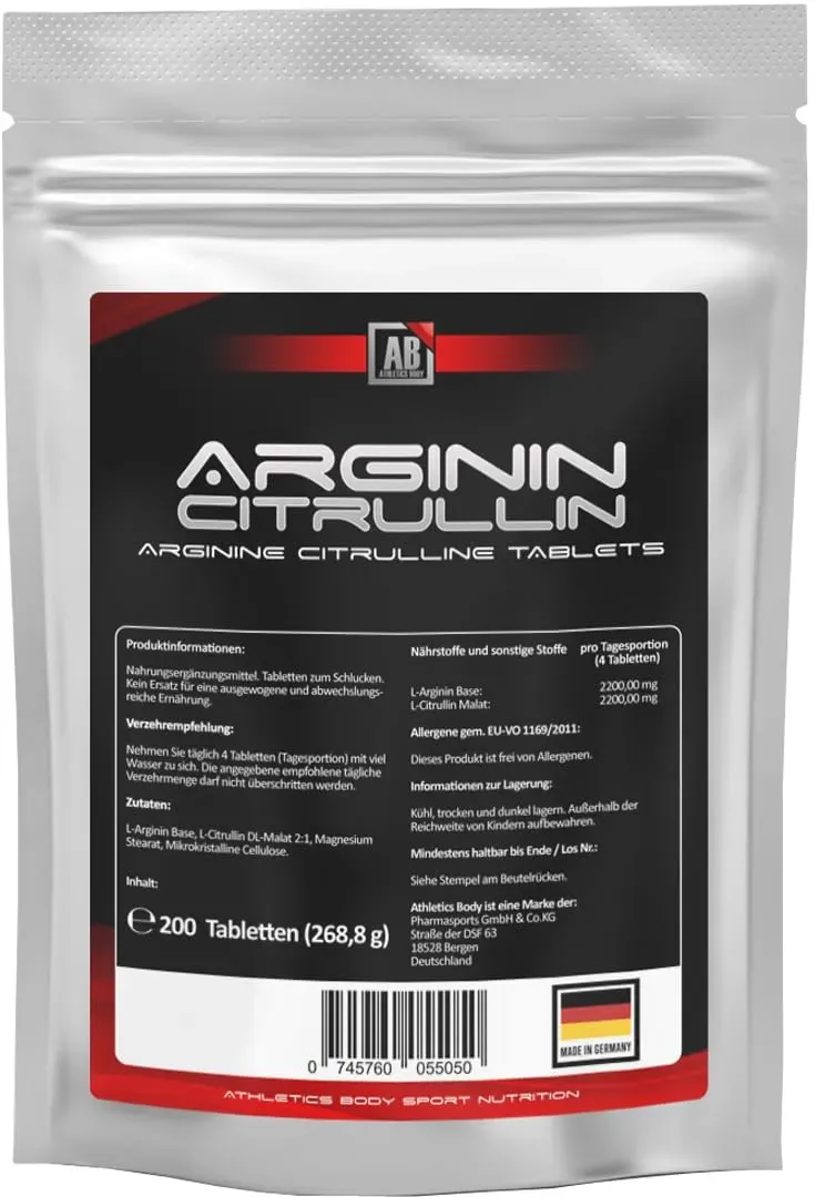 Verfügbarkeit: Auf Lager - Kategorie: Sportnahrung - Athletics Body - GTIN:4057171735169 - ðªULTRA HOCHDOSIERTE TABLETTEN: In jeden Standbeutel befinden sich 200 L-Arginin + L-Citrulin Tabletten mit 1100 mg Wirkstoffgehalt pro Tabs. Eine Tagesportion von 4 Tabs versorgt Ihren Körper mit 2200 mg L-Arginin Base + 2200 mg L-Citrullin DL-Malat 2:1 (4400 mg Aminosäuren Gehalt pro Tagesportion). ðªüBERLEGENDE KOMBINATION: Für unsere Premium Tabletten wird reines L-Arginin Base verwendet. L-Arginin Base hat einen sehr guten pH-Wert & besteht aus 100% L-Arginin. Beim L-Citrullin wird die leistungsstarke 2:1 Version, bestehend aus 70 % L-Citrullin & 30 % Malat eingesetzt. ðªEINFACHE ANWENDUNG: Ca. 45 Minuten vor dem Workout 4 Tabs mit viel Flüssigkeit verzehren. ðªLABORGEPRüFT & OHNE UNERWüNSCHTE ZUSATZSTOFFE: Unabhängig laborgeprüft auf Schwermetalle, Schimmelpilze, E. Coli, Salmonellen & weitere relevante Prüfkriterien. Unsere Tabs sind frei von Aromen, frei von Farbstoffen, frei von Konservierungsstoffen, frei von gentechnikveränderten Zutaten (GMO frei). ðªQUALITäT & IHRE ZUFRIEDENHEIT: Unser Sortiment umfasst zahlreiche Nahrungsergänzungsmittel zu einem fairen Preis-Leistungs-Verhältnis. Alle Produkte werden aus hochwertigen Premium Rohstoffen und ausschließlich in zertifizierten Betrieben innerhalb Deutschland hergestellt. Sollten Sie mit unserem Produkt nicht zufrieden sein, oder aber Hilfe und Beratung benötigen, kontaktieren ... ProFuel ist bekannt für hochwertige Produkte, und diese Kapseln sind optimal hochdosiert und laborgeprüft. ![]() ![]() ProFuel L-Arginin + L-Citrullin-Malat Kapseln 360x - optimal hochdosiert mit 6000 mg pro Tag aus L-Arginin (2400 mg) + L-Citrullin-Malat (3600 mg) - laborgeprüft mit Zertifikat - vegan