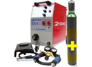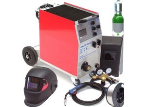 Werkzeug Spezialwerkzeug Elektroschweißen MMA-Schweißgeräte & Elektrodenschweißgeräte Sonstige - EAN:4251679715689 - EASY MIG Combi 190 AM mit Alu-Schweiß-Komplett-Set Das Komplett-Set enthält: Easy Mig Combi 190 AM 3 Meter Schlauchpaket mit Teflonseele Automatikhelm 10 Ltr. Argon Eigentumsflasche inkl. Füllung 2 kg Drahtrolle Alu Almg5 / 1,0mm lagengewickelt und natürlich 3 Meter Massekabel und einen Gasdruckminderer! Die flexible synergische 190AM Anlage für das MIG/MAG Schutzgasschweißen ist dank Teflonseele für Schweißarbeiten von dünn bis dick für Baustahl, Stahl- Edelstahl und natürlich Alu ideal. Äußerst flexibel einsetzbar am 230 Volt-Netz mit Schukostecker oder am 400 Volt-Kraftstrom-Netz. Einfach nur umschalten, schon kann das jeweilige Spannungsnetz genutzt werden. Durchdachtes Design und hohe Bedienerfreundlichkeit (dank Synergieregelung) im kompakten Gehäuse. Diese Kompaktanlage ist mit leistungsfähiger Intervall-Punktschweißelektronik -IP- ausgerüstet, zur stufenlosen Einstellung von Punktzeit, Pausenzeit und Intervallschweißzeit. Inklusive 2-Takt / 4-Takt Brennersteuerung zur - gefunden von Kelkoo Ein weiteres komplettes Schweißgerät-Set mit einer 10L Gasflasche und Schweißdraht, ideal für Anwender, die ein leistungsstarkes MIG-Gerät benötigen. ![]() Apex Schutzgasschweißgerät MIG 200 Combi mit 10 L Gasflasche und 5kg Schweissdraht