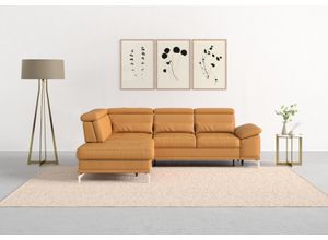 Sofas Wohnen Sofas Sessel - - Ausstattung Funktionen: Stellvariante: Ottomane rechts, Art Polsterung: Federkern, Wellenunterfederung, Art Verstellfunktion: manuell verstellbar, Ausstattung: Sitztiefenverstellung, Raumgewicht: 30 kg/m³, Anzahl Sitzflächen: 4 Stk., Maßangaben: Breite: 274 cm, Tiefe: 230 cm, Höhe: 87 cm, Sitzhöhe: 48 cm, Breite Sitzfläche: 195 cm, Tiefe Sitzfläche: 52 cm, Tiefe Sitzfläche minimal: 52 cm, Tiefe Sitzfläche maximal: 67 cm, Breite Armlehnen: 35 cm, Tiefe Armlehnen: 100 cm, Höhe Armlehnen: 62 cm, Breite Liegefläche: 195 cm, Länge Liegefläche: 132 cm, Breite Bettkasten: 52 cm, Tiefe Bettkasten: 92 cm, Höhe Bettkasten: 17 cm, Höhe Füße: 12 cm, Bodenfreiheit: 12 cm, Tiefe Hauptelement: 112 cm, Belastbarkeit maximal: 440 kg, Belastbarkeit Stauraum maximal: 5 kg, Höhe maximal: 104 cm, Höhe minimal: 87 cm, Breite Sitzfläche langer Schenkel: 195 cm, Breite Sitzfläche kurzer Schenkel: 190 cm, Breite Nierenkissen: 65 cm, Höhe Nierenkissen: 23 cm, Tiefe Nierenkissen: 13 cm, Belastbarkeit pro Sitzplatz: 110 kg, Hinweis Maßangaben: Alle Angaben sind ca.-Maße., Material: Bezug: NaturLEDER®, Stoff, Material Untergestell: Massivholz, Spanplatte, Material Füße: Metall, Materialhinweis: Achtung! Naturleder weist grundsätzlich mehr Nähte auf als andere Bezüge. Liegefläche und Rückseite mit Spannstoff, Farbe: Farbbezeichnung: altweiß, Farbe Füße: Silber Metallic Glanz, Allgemein: Ausführung: mit Bettfunktion, mit Bettkasten, Lieferung Montage: Aufbauhinweise: ... Ein auffälliges Ecksofa in Gelb (curry), das nicht nur durch seine Farbe, sondern auch durch seine umfangreichen Verstellmöglichkeiten und den Federkern überzeugt. ![]() Ecksofa SIT MORE 'Cabrio L-Form, B: 274 cm, mit Sitztiefen-, Arm- Kopfteilverstellung', gelb (curry), B:274cm H:87cm T:230cm, Sofas, Ecksofa, 3 Nierenkissen, Federkern, optional Bettfunktion und Stauraum