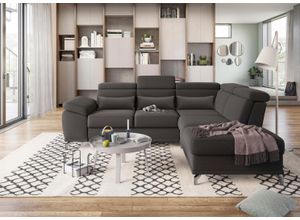 Sofas Wohnen Sofas Sessel - - Ausstattung Funktionen: Stellvariante: Ottomane rechts, Art Polsterung: Federkern, Wellenunterfederung, Art Verstellfunktion: manuell verstellbar, Ausstattung: Sitztiefenverstellung, Raumgewicht: 30 kg/m³, Anzahl Sitzflächen: 4 Stk., Maßangaben: Breite: 274 cm, Tiefe: 230 cm, Höhe: 87 cm, Sitzhöhe: 48 cm, Breite Sitzfläche: 195 cm, Tiefe Sitzfläche: 52 cm, Tiefe Sitzfläche minimal: 52 cm, Tiefe Sitzfläche maximal: 67 cm, Breite Armlehnen: 35 cm, Tiefe Armlehnen: 100 cm, Höhe Armlehnen: 62 cm, Höhe Füße: 12 cm, Bodenfreiheit: 12 cm, Tiefe Hauptelement: 112 cm, Belastbarkeit maximal: 440 kg, Belastbarkeit Stauraum maximal: 5 kg, Höhe maximal: 104 cm, Höhe minimal: 87 cm, Breite Sitzfläche langer Schenkel: 195 cm, Breite Sitzfläche kurzer Schenkel: 190 cm, Breite Nierenkissen: 65 cm, Höhe Nierenkissen: 23 cm, Tiefe Nierenkissen: 13 cm, Belastbarkeit pro Sitzplatz: 110 kg, Hinweis Maßangaben: Alle Angaben sind ca.-Maße., Material: Bezug: Luxus-Microfaser, Abriebfestigkeit Bezug: 3 (ziemlich gut), Pillingbildung Bezug: 4 (gering), Material Untergestell: Massivholz, Spanplatte, Material Füße: Metall, Materialhinweis: Rückseite Originalbezugsqualität, Information Materialzusammensetzung: 100% Polyester, Scheuerbeständigkeit Bezug: 20.000 Scheuertouren, Farbe: Farbbezeichnung: schlamm, Farbe Füße: Silber Metallic Glanz, Allgemein: Ausführung: ohne Bettfunktion, ohne Bettkasten, Lieferung Montage: Aufbauhinweise: einfache Selbstmontage mit ... Dieses Ecksofa bietet mit Sitztiefen-, Arm- und Kopfteilverstellung hohen Komfort und ist mit optionaler Bettfunktion und Stauraum sehr funktional. ![]() Ecksofa SIT MORE 'Cabrio L-Form, B: 274 cm, mit Sitztiefen-, Arm- Kopfteilverstellung', grau (elephant), B:274cm H:87cm T:230cm, 100% Polyester, Sofas, Ecksofa, 3 Nierenkissen, Federkern, optional Bettfunktion und Stauraum