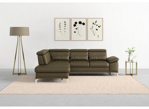 Sofas Wohnen Sofas Sessel - - Ausstattung Funktionen: Stellvariante: Ottomane links, Art Polsterung: Federkern, Wellenunterfederung, Art Verstellfunktion: manuell verstellbar, Ausstattung: Sitztiefenverstellung, Raumgewicht: 30 kg/m³, Anzahl Sitzflächen: 4 Stk., Maßangaben: Breite: 274 cm, Tiefe: 230 cm, Höhe: 87 cm, Sitzhöhe: 48 cm, Breite Sitzfläche: 195 cm, Tiefe Sitzfläche: 52 cm, Tiefe Sitzfläche minimal: 52 cm, Tiefe Sitzfläche maximal: 67 cm, Breite Armlehnen: 35 cm, Tiefe Armlehnen: 100 cm, Höhe Armlehnen: 62 cm, Höhe Füße: 12 cm, Bodenfreiheit: 12 cm, Tiefe Hauptelement: 112 cm, Belastbarkeit maximal: 440 kg, Belastbarkeit Stauraum maximal: 5 kg, Höhe maximal: 104 cm, Höhe minimal: 87 cm, Breite Sitzfläche langer Schenkel: 195 cm, Breite Sitzfläche kurzer Schenkel: 190 cm, Breite Nierenkissen: 65 cm, Höhe Nierenkissen: 23 cm, Tiefe Nierenkissen: 13 cm, Belastbarkeit pro Sitzplatz: 110 kg, Hinweis Maßangaben: Alle Angaben sind ca.-Maße., Material: Bezug: NaturLEDER®, Stoff, Material Untergestell: Massivholz, Spanplatte, Material Füße: Metall, Materialhinweis: Achtung! Naturleder weist grundsätzlich mehr Nähte auf als andere Bezüge. Rückseite mit Spannstoff, Farbe: Farbbezeichnung: olive, Farbe Füße: Silber Metallic Glanz, Allgemein: Ausführung: ohne Bettfunktion, ohne Bettkasten, Lieferung Montage: Aufbauhinweise: einfache Selbstmontage mit Aufbauanleitung, Lieferzustand: zerlegt, Hinweis Lieferumfang: Zierkissen und Hocker bitte separat bestellen, Hinweise: ... Dieses Ecksofa in Rot (merlot) ist eine elegante und komfortable Wahl, die mit Federkern und optionaler Bettfunktion punktet. ![]() Ecksofa SIT MORE 'Cabrio L-Form, B: 274 cm, mit Sitztiefen-, Arm- Kopfteilverstellung', rot (merlot), B:274cm H:87cm T:230cm, Sofas, Ecksofa, 3 Nierenkissen, Federkern, optional Bettfunktion und Stauraum