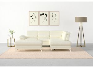 Sofas Wohnen Sofas Sessel - - Ausstattung Funktionen: Stellvariante: Ottomane rechts, Art Polsterung: Federkern, Wellenunterfederung, Art Verstellfunktion: manuell verstellbar, Ausstattung: Sitztiefenverstellung, Raumgewicht: 30 kg/m³, Anzahl Sitzflächen: 4 Stk., Maßangaben: Breite: 274 cm, Tiefe: 230 cm, Höhe: 87 cm, Sitzhöhe: 48 cm, Breite Sitzfläche: 195 cm, Tiefe Sitzfläche: 52 cm, Tiefe Sitzfläche minimal: 52 cm, Tiefe Sitzfläche maximal: 67 cm, Breite Armlehnen: 35 cm, Tiefe Armlehnen: 100 cm, Höhe Armlehnen: 62 cm, Höhe Füße: 12 cm, Bodenfreiheit: 12 cm, Tiefe Hauptelement: 112 cm, Belastbarkeit maximal: 440 kg, Belastbarkeit Stauraum maximal: 5 kg, Höhe maximal: 104 cm, Höhe minimal: 87 cm, Breite Sitzfläche langer Schenkel: 195 cm, Breite Sitzfläche kurzer Schenkel: 190 cm, Breite Nierenkissen: 65 cm, Höhe Nierenkissen: 23 cm, Tiefe Nierenkissen: 13 cm, Belastbarkeit pro Sitzplatz: 110 kg, Hinweis Maßangaben: Alle Angaben sind ca.-Maße., Material: Bezug: NaturLEDER®, Stoff, Material Untergestell: Massivholz, Spanplatte, Material Füße: Metall, Materialhinweis: Achtung! Naturleder weist grundsätzlich mehr Nähte auf als andere Bezüge. Rückseite mit Spannstoff, Farbe: Farbbezeichnung: merlot, Farbe Füße: Silber Metallic Glanz, Allgemein: Ausführung: ohne Bettfunktion, ohne Bettkasten, Lieferung Montage: Aufbauhinweise: einfache Selbstmontage mit Aufbauanleitung, Lieferzustand: zerlegt, Hinweis Lieferumfang: Zierkissen und Hocker bitte separat bestellen, Hinweise: ... Dieses hochwertige Ecksofa in Weiß (altweiß) bietet luxuriösen Komfort und ist mit Federkern sowie optionaler Bettfunktion und Stauraum ausgestattet. ![]() Ecksofa SIT MORE 'Cabrio L-Form, B: 274 cm, mit Sitztiefen-, Arm- Kopfteilverstellung', weiß (altweiß), B:274cm H:87cm T:230cm, Sofas, Ecksofa, 3 Nierenkissen, Federkern, optional Bettfunktion und Stauraum