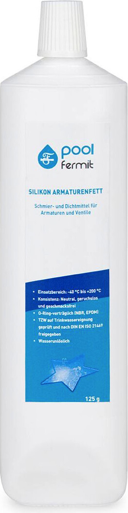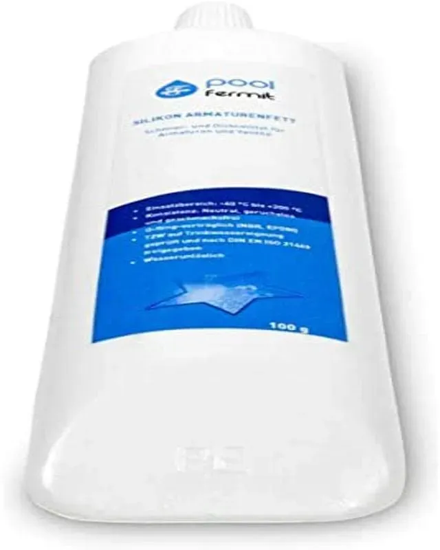 EAN: 4030777091242 - Silikon Armaturenfett | 100 g Tube | FermitDas Silikon-Armaturenfett ist Fett auf Basis von 100 % Silikonöl und inerten Füllstoffen. Das Fett ist wasserabweisend, temperaturbeständig und beständig gegen zahlreiche Chemikalien. Verwendet wird es zum Fetten und Schmieren von Absperrhähnen und Ventilen an Pools, Bewässerungsanlagen und Installationen in Meeresumgebung.Das Fett verhindert Kalkablagerungen aus dem Wasser an den geschmierten Teilen. Außerdem ist es geeignet zum Fetten von Absperrhähnen und Ventilen, die in der Industrie und in Labors unter sehr hohen bzw. sehr niedrigen Temperaturen, unter Wasserdampf oder in Kontakt mit korrosiven Chemikalien eingesetzt werden. Auch zum Schmieren von Sanitärarmaturen kann man es verwenden.Da das Fett wasserabweisend ist, ist es gut geeignet für Vorrichtungen, die warme, wässrige Lösungen transportieren.Eigenschaften:WasserabweisendTemperaturbeständigbeständig gegen zahlreiche Chemikalien Produktdetails:Fett auf der Basis von 100% Silikonöl und inerten Füllstoffenzum fetten und schmieren von Absperrhähnen und Ventilen an Pools, Bewässerungsanlagen und Installationen in Meeres Umgebungverhindert Kalkablagerungen aus dem Wasser an den geschmierten TeilenWasserabweisendgeeignet für Vorrichtungen, die warme, wässrige Lösungen transportierenLieferumfang:Fermit Pool Silikon Armaturenfett 100g 09124 Bitte entnehmen Sie die notwendigen Warn- und Sicherheitshinweise aus den passenden Unterlagen im Bereich 'Dokumente' ... ![]() ![]()