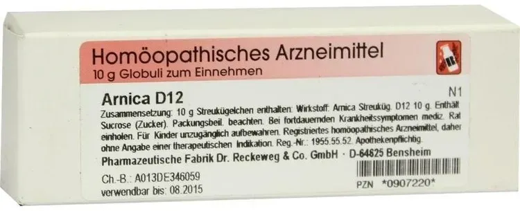 58.00 / 100 g - Kategorie: Arzneimittel - Homöopathisches Laboratorium Alexander Pflüger GmbH & Co. KG - GTIN:4150180515934 - PZN:18051593 - ARNICA D 12 Globuli Pflüger Dosierspender 10 g - 5,80 Euro bei Preisapo - gefunden von billiger.de Dieses Angebot ist eine preiswerte Option für Arnica D12 von einem bekannten Hersteller. ![]() ![]() Dr. Reckeweg & Co. GmbH Arnica D12