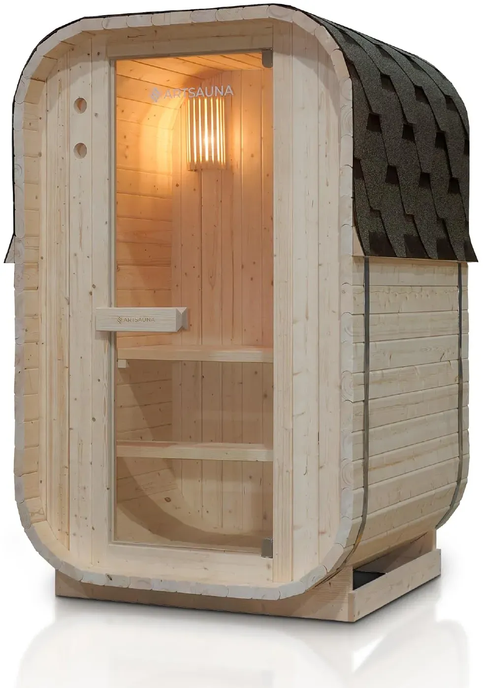 Artsauna - EAN: 4262437185750 - Du hast es verdient, dich regelmäßig um dein Wohlbefinden zu kümmern ganz ohne Termine oder Anfahrt. Die Cube Fasssauna Nolvik S macht deinen Garten zum privaten Rückzugsort. Der leistungsstarke 3,6 kW Ofen bringt dich zuverlässig auf bis zu 100 C ideal zur Regeneration, gegen Verspannungen oder einfach zum Abschalten. Im Inneren sorgen Naturholz aus Fichte, Ambiente-Beleuchtung und ein umfangreiches Zubehör-Set für Komfort. Die kompakte Outdoor-Sauna bietet Platz für 1 bis 2 Personen und ist durch das wetterfeste Design mit Dachschindeln perfekt für den ganzjährigen Einsatz. Das ideale Sauna-Komplettset für dein Gartenprojekt. Produktmerkmale: Robustes Massivholz aus hochwertigem & starkem FichtenholzInklusive kraftvollem 3,6 kW Elektroofen mit SaunasteinenUmfangreiches Set mit Aufgusseimer, Schöpfkelle & mehrModerne Outdoor-Sauna im Cube DesignGanzjährig nutzbare Gartensauna Zwei Bänke für individuelle Auszeiten Ob aufrecht sitzen oder entspannt zurücklehnen die unterschiedlich breiten Bänke bieten dir genau die Freiheit, die du nach einem langen Arbeitstag brauchst, um wieder zur Ruhe zu kommen.Kompakter Saunaofen Der kompakte Elektroofen bringt die kleine Sauna auf bis zu 100 C perfekt, um Verspannungen zu lösen und neue Energie zu tanken.Fichtenholz schafft wohliges Klima Das massive Naturholz sorgt nicht nur für Stabilität, sondern auch für ein angenehmes Raumklima, das dich inmitten deines Gartens zur Ruhe kommen lässt.Praktisches ... ![]() Artsauna Fasssauna Nolvik S für 1 bis 2 Personen, mit 3,6 kW Ofen & Zubehör für Garten, Cube Design