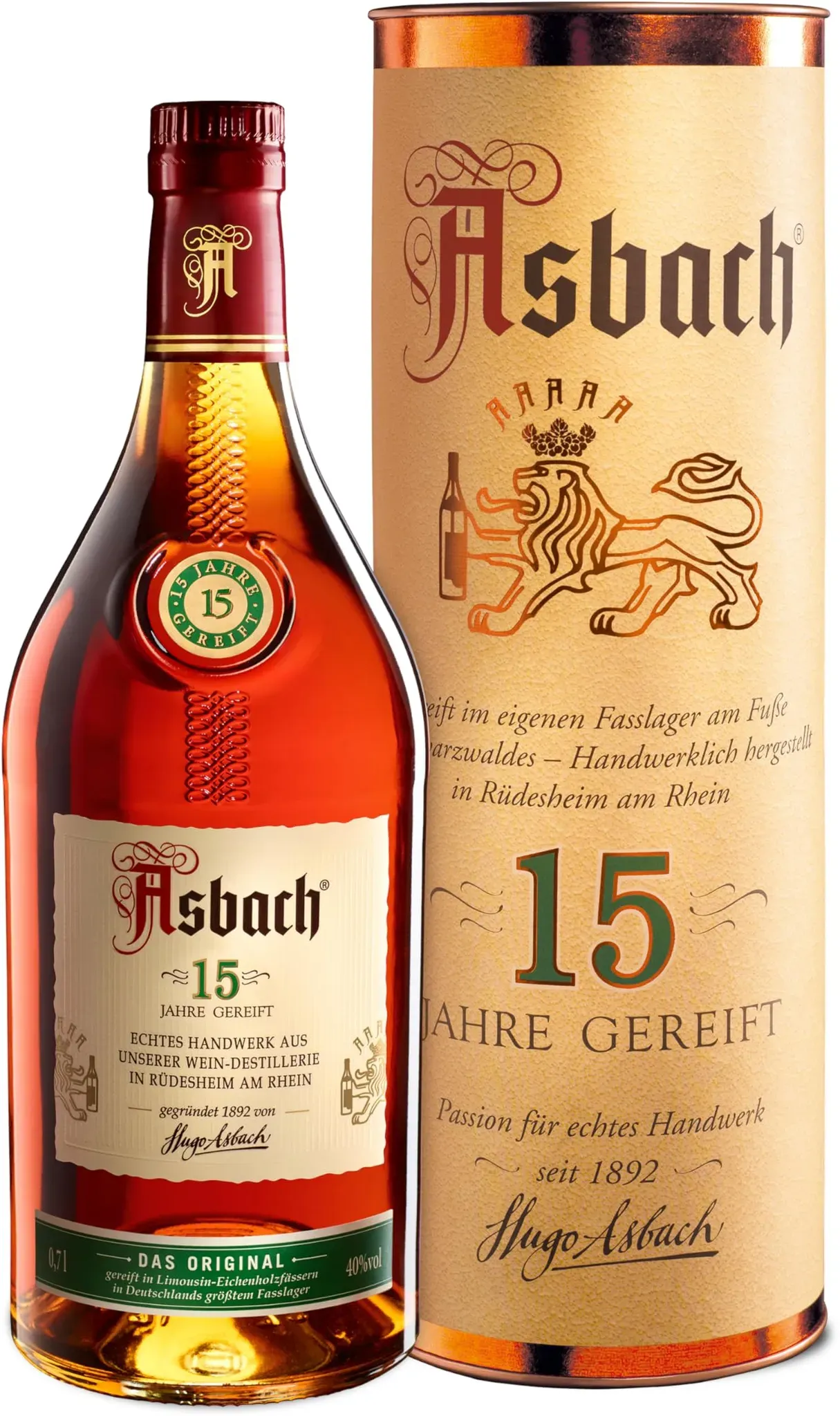 54.14 /l - Kategorie: Weinbrände - Asbach - GTIN:4016500512406 - Asbach 1 betört die Sinne beim Purgenuss mit blumigen Nuancen von Jasmin und einem besonders langen Abgang. Gleich bei mySpirits bestellen! - 37,90 Euro bei myspirits.eu - gefunden von billiger.de ![]() ![]() Asbach 15 - Jahre gereift eBay Weinbrand / 40 % Vol. / 0,7 Liter-Flasche in GD