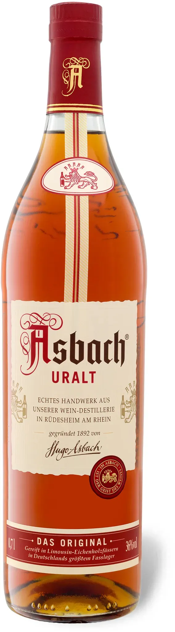 Kategorie: Weinbrände - Asbach - GTIN:4016500011206 - Weinbrand, 36%vol die älteste Deutsche Weinbrand-Marke, abgerundeter Geschmack und harmonisches Bukett - 14,35 Euro bei Beowein - gefunden von billiger.de Ein gutes Angebot im mittleren Preissegment für die 0,7L Flasche. ![]() ![]() Asbach Uralt - 0,7l, alc. eBay 36 Vol.-%