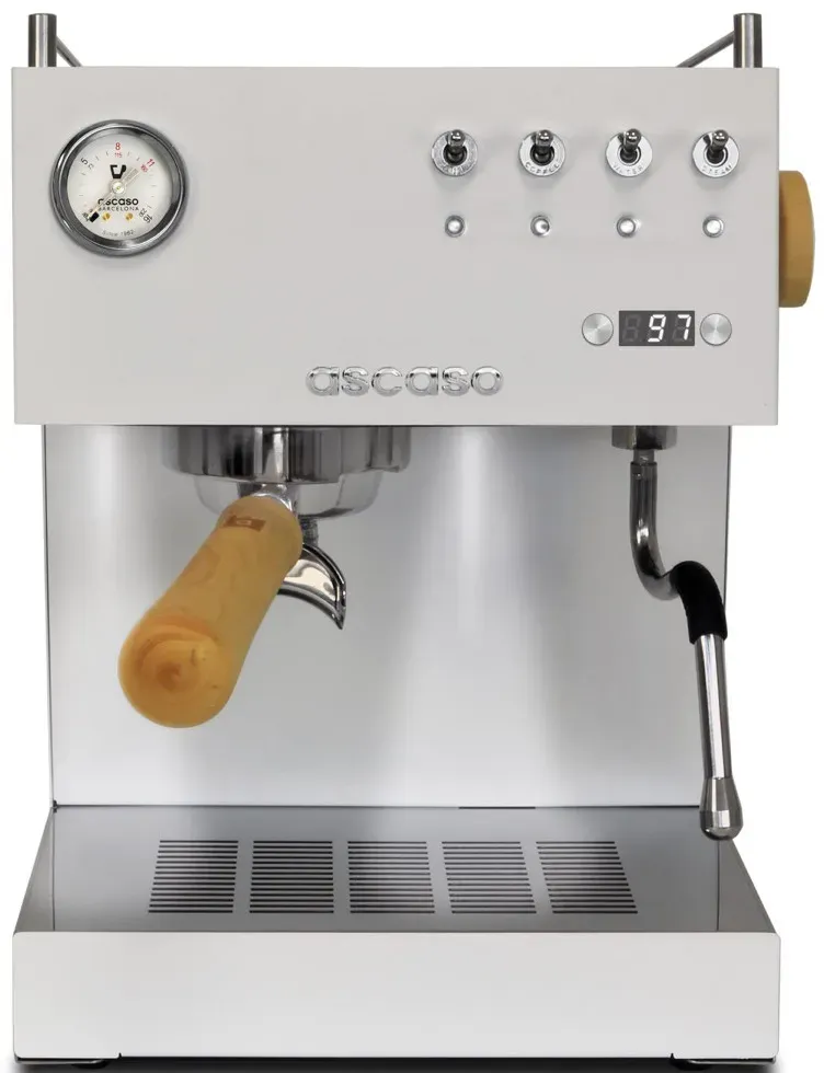Ascaso - EAN: 8435172651293 - Ascaso Steel Uno PID, weißMit einem modernen Konzept und der PID Steuerung ist die Ascaso Steel Uno eine Einkreiser Espressomaschine mit einem Thermoblock aus Aluminium und Edelstahl, für eine schnelle Aufheizzeit, einen ordentlichen Brüh- und Dampfdruck sowie einen tollen Espresso. Mit der multifunktionalen PID Steuerung können sie die Temperaturvorwahl, eine zeitlich regulierbare elektronische Pre-Infusion und Shot-Clock (Timerfunktion) steuern. Die klassische Espresso- und Siebträgermaschine hat ein Präzisionsmanometer zum Ablesen des Brühdrucks an der Frontseite und Kippschalter zur einfachen Ein- und Ausschalten. Seitlich an der Siebträgermaschine befindet sich ein herausnehmbarer Wassertank mit der maximalen Füllmenge von 2 Liter.Minimalistisches Design und einfache Bedienung - Espresso und Siebträgermaschine Ascaso Steel Uno mit PID SteuerungSiebträger- und Espressomaschine mit elektronischer PID SteuerungGradgenaue Temperaturvorwahl und Zeitanzeige während des BezugesEinstellba - bei kaufland.de - aus Yadore Produktdaten ![]() kaufland.d e ASCASO FACTORY Steel Uno PID, Espressomaschine, 2 l, Gemahlener Kaffee, 1050 W, Weiß 601301