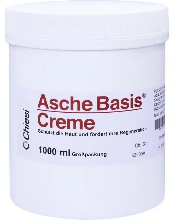 24 Händlerangebote bei billiger.de - Kategorie: Arzneimittel - CHIESI GMBH - Asche Basis Creme für die trockene und empfindliche Haut geeignet hochwertige öl-in-Wasser-Emulsion ca. 30 % Fettgehalt führt Feuchtigkeit zu und schützt vor Hautproblemen zieht gut ein und kühlt Feuchtigkeit entspannt trockene Haut ausgezeichnet hautverträglich Für die trockene und empfindliche Haut, bei Mischhaut oder fettiger Haut zu empfehlen Die Asche Basis Creme führt der Haut wichtige Feuchtigkeit zu und ist nur leicht fettend . Sie hinterlässt keinen glänzenden Film und ist leicht abwaschbar . Die Creme bildet keine Verdunstungsbarriere, so dass Feuchtigkeit ungehindert an die Umgebung abgegeben werden kann. Asche Basis Creme macht sich durch einen angenehmen kühlenden Effekt bemerkbar. - GTIN:4150021344433 - PZN:02134443 Diese 1000 ml Creme ist ein sehr preiswertes Großpackungsangebot, ideal für den regelmäßigen und umfangreichen Gebrauch. ![]() ![]() CHIESI GMBH Asche Basis Creme 1000 ml