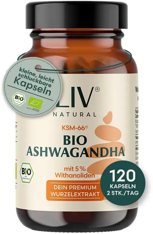 Kategorie: Nahrungsergänzungsmittel - Natural Elements - GTIN:4260558410614 - Natürliche Unterstützung Für Entspannung Und Schlaf Entdecke Die Kraft Der Indischen Schlafbeere Mit Unseren Hochwertigen Ashwagandha-kapseln. Seit Jahrhunderten Wird Ashwagandha Bei Stress, Unruhe Und Zur Förderung Des Schlafes Verwendet. Wir Setzen Auf Den Bewährten Markenrohstoff Ksm-66 In Bio-qualität, Damit Du Dich Sorgenfrei Zurücklehnen Kannst. Konzentrierte Wirkstoff Unser Bio-wurzelpulver Wird Besonders Schonend Verarbeitet Und Enthält Dank Des Hochwertigen Rohstoffs Einen Standardisierten Withanolidgehalt Von 5 %. Diese Wertvollen Pflanzenstoffe Unterstützen Deinen Organismus Optimal. Einfaches Relax-ritual Für Die Nacht Für Einen Entspannten Abend Und Eine Erholsame Nacht: Nimm Einfach 2 Kapseln Vor Dem Schlafengehen Ein. Das Pulver Kann Auch In Eine Leckere Moon-milk Eingerührt Werden Perfekt, Um Den Tag Beruhigt Ausklingen Zu Lassen Und Am Morgen Voller Energie Zu Starten. 100% Natürlicher Ursprung Unsere Ashwagandha Kapseln Bestehen Aus Reinem Bio Ashwagandha Ksm-66 Pulver Und Sonst Nichts. Sie Sind Vegan, Hochdosiert Und Hoch Bioverfügbar Frei Von Gentechnik Und Unnötigen Zusätzen. Nur Die Reine Naturkraft Für Dein Wohlbefinden. Qualität Ohne Kompromisse Bei Vitaoutlet Setzen Wir Auf Qualität Ohne Kompromisse. Unsere Ashwagandha Kapseln Enthalten Keine Füllstoffe, Künstlichen Farbstoffe, Trägerstoffe, Stabilisatoren, Aromen Oder Trennmittel. Du Erhältst Nur Das, Was Wirklich Zählt. ... Die LIV Ashwagandha Kapseln BIO mit KSM-66® Wurzelextrakt sind ideal für alle, die Wert auf Bio-Qualität und Reinheit legen. ![]() ![]() LIV Ashwagandha Kapseln BIO | Ashwagandha KSM-66 Wurzelextrakt, 5% Withanolide | 120 Kapseln, ohne Zusätze, ohne Füllstoffe & Vegan | Für innere Balance, Stressresistenz & Wohlbefinden