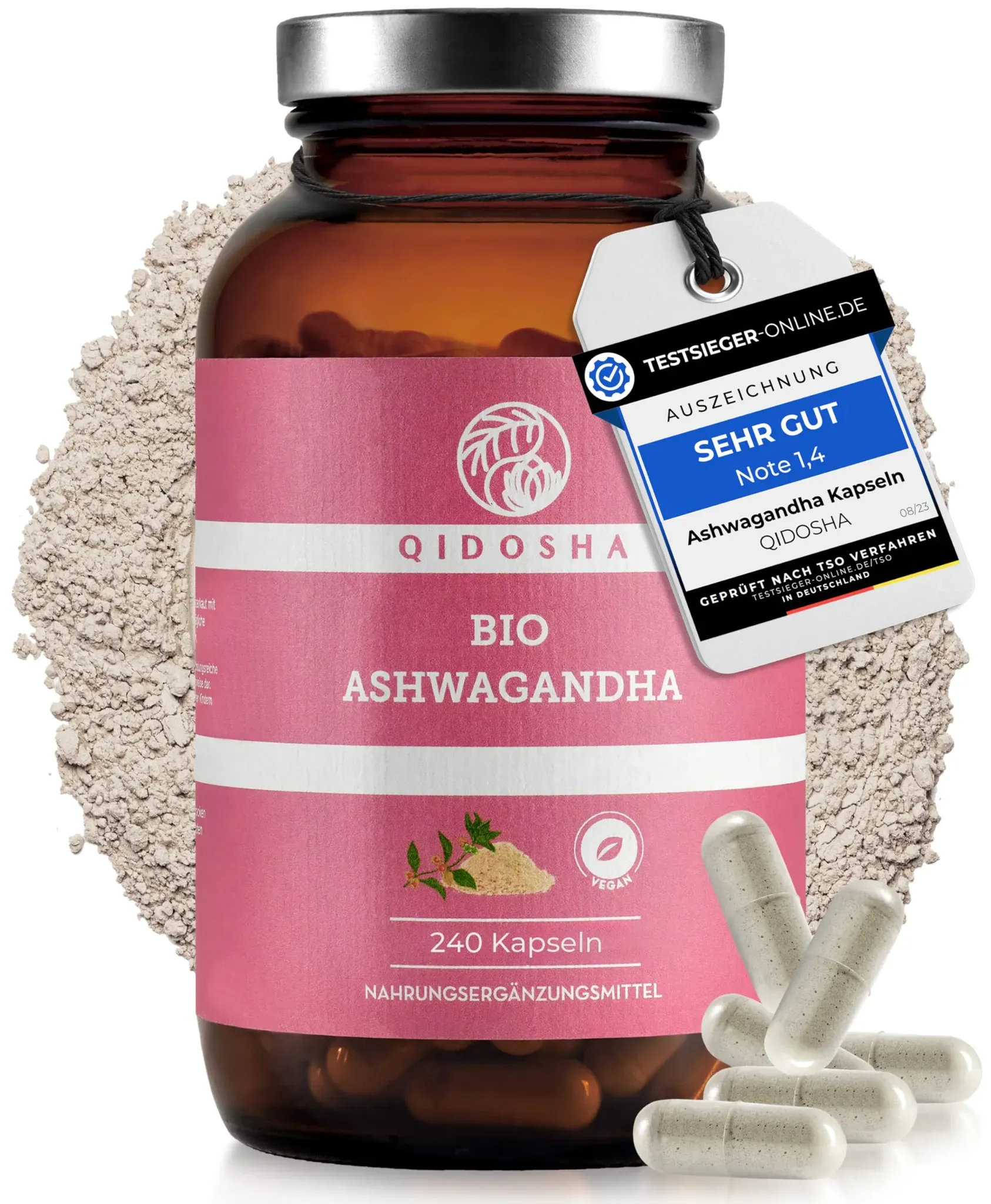 Kategorie: Nahrungsergänzungsmittel - QIDOSHA - GTIN:4270001834713 - GLAS STATT PLASTIK - Unsere Produkte werden ausschließlich in Glasbehältern oder Refill Bags geliefert. Wir verzichten vollständig auf Plastik. Glas gibt keinerlei Stoffe an den Inhalt ab (Thema Mikroplastik!) und ist daher auch 100% geschmacksneutral. Das braune Apothekerglas schützt die Kapseln im Inneren ideal vor schädlichen UV-Strahlungen. BIO-ZERTIFIZIERT - Wir legen großen Wert auf authentische Rohstoffe direkt aus Indien und gleichzeitig auf hohe Qualitäts- und Reinheitsstandards. Daher ist unsere Ashwagandha Kapsel bio-zertifiziert. JEDE CHARGE LABORGEPRüFT - Unser Ashwagandha Pulver bio wird sorgfältig in Deutschland hergestellt und jede Charge gründlich durch ein externes, zertifiziertes Labor geprüft - u.a. auf Schwermetalle, Pestizide und mikrobielle Belastung. HOCHWERTIGE INHALTSTOFFE - Die Ashwagandha Kapseln enthalten nur hochwertige und geprüfte Rohstoffe. Unsere Bio Ashwagandha Kapseln sind frei von Zusatz- und Füllstoffen. Ohne Magnesiumstearat. 100% VEGAN - Die Bio Ashwagandha Kapseln enthalten ausschließlich pflanzliche Inhaltsstoffe, ohne tierische Bestandteile oder Gentechnik. Daher ist dieses Produkt optimal für die vegane Ernährung geeignet. AUSGEZEICHNETE QUALITäT - *Testsieger 08/2023 in der Kategorie 'Ashwagandha Kapseln' mit der Gesamtnote 1,4 ('Testsieger Online') - 17,90 Euro bei Amazon Marketplace Health & Personal Care - gefunden von billiger.de Die Natural Elements Bio Ashwagandha Kapseln mit KSM-66® sind eine beliebte Wahl für eine hochwertige, laborgeprüfte und vegane Option. ![]() ![]() Natural Elements vitaoutlet | Bio Ashwagandha Hochdosiert | KSM-66 Premiumrohstoff (180 Kapseln) | original indische Schlafbeere | natürlich | laborgeprüft | vegan | für 6 Monate | Premium Ashwagandha Kapseln