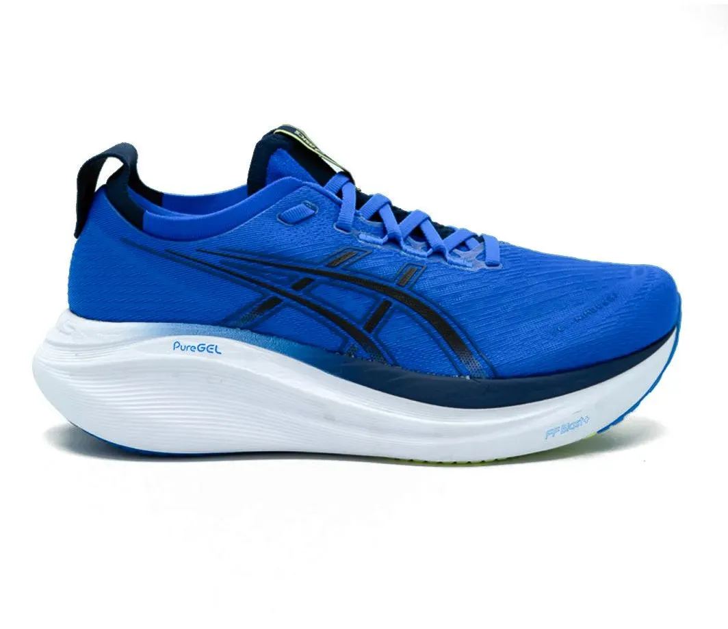 Kategorie: Laufschuhe - Asics - GTIN:4570158286879 - ASICS GEL-Nimbus 27 Der ASICS GEL-Nimbus 27 ist ein neutraler Premium-Laufschuh für die Straße, der maximalen Komfort und Dämpfung für lange Distanzen bietet. Mit überarbeiteter Zwischensohle und atmungsaktivem Obermaterial eignet er sich ideal für Läufer*innen, die ein weiches, stabiles Laufgefühl suchen. Technische Spezifikationen: Sprengung: 8 mm (43,5 mm Ferse / 35,5 mm Vorfuß) Gewicht: ca. 305 g (Herren US 9) / ca. 265 g (Damen US 8) Dämpfung: FF BLASTTM PLUS ECO-Schaumstoff mit PureGELTM-Technologie Außensohle: HYBRID ASICSGRIPTM (ASICSGRIPTM + AHARPLUSTM Gummi) Obermaterial: Atmungsaktives Jacquard-Mesh Highlights: FF BLASTTM PLUS ECO-Schaumstoff: Bietet eine weiche und reaktive Dämpfung mit ca. 24?% biobasiertem Anteil. PureGELTM-Technologie: Sorgt für effektive Stoßabsorption und erhöhten Komfort im Fersenbereich. HYBRID ASICSGRIPTM-Außensohle: Gewährleistet hervorragende Traktion und Haltbarkeit auf verschiedenen Untergründen. Jacquard-Mesh-Obermaterial: Verbessert die Atmungsaktivität und bietet eine bequeme Passform. Vielseitigkeit: Geeignet für lange Läufe, Erholungsläufe und tägliches Training. Einsatzbereiche: Der GEL-Nimbus 27 eignet sich hervorragend für: Lange Distanzen und Marathontraining Erholungsläufe Läufer*innen mit neutralem Abrollverhalten Komfortorientiertes tägliches Training Fazit: Der ASICS GEL-Nimbus 27 kombiniert maximalen Komfort, effektive Dämpfung und langlebige Materialien in einem ... Ein attraktives Damenmodell in Blau zu einem sehr guten Preis, perfekt für Läuferinnen, die Komfort suchen. ![]() ![]() Asics GEL-NIMBUS 27 Damen Wave Teal/Illuminate Mint 38