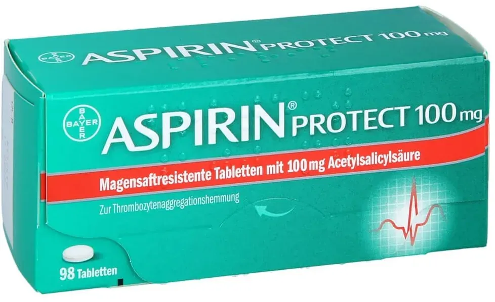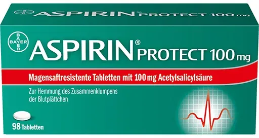 0.10 / 1 ct - Kategorie: Arzneimittel - Bayer - GTIN:4150067061493 - PZN:06706149 - 06706149: Bayer Vital GmbH - Geschäftsbereich Pharma - ASPIRIN Protect 100 mg magensaftres.Tabletten 42 St - 4,03 Euro bei ayvita.de - gefunden von billiger.de Dieses Angebot ist das günstigste für die gängige 98-Stück-Packung und somit sehr attraktiv für den regelmäßigen Gebrauch. ![]() ![]() Bayer Aspirin protect 100 mg 98 St.