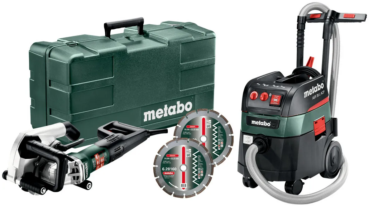 keine Angabe Sofort lieferbar, 1-3 Werktage in_stockMetabo Mauernutfräse MFE 40 + Allessauger ASR 35 L ACP Set + 2 Diamant-Trennscheiben Classic UC Kunststoffkoffer