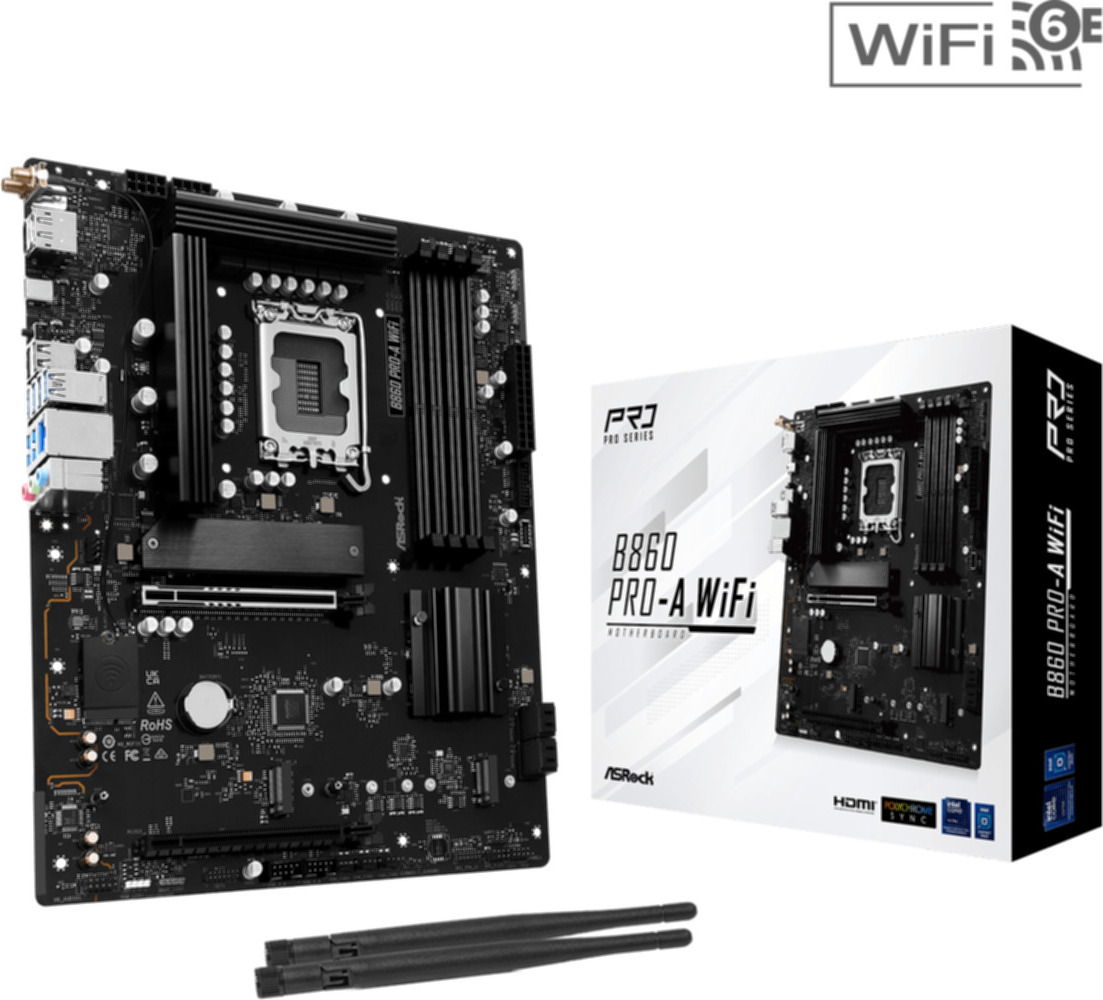 lieferbar-in 3-4 Werktagen bei dirAsrock B860 Pro-A WiFi Mainboard, Wi-Fi 6E (802.11ax) bunt