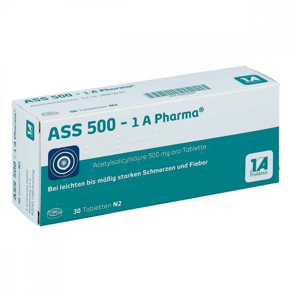 0,06 /Stück - Kategorie: Arzneimittel - 1 A Pharma - GTIN:4150086124292 - PZN:08612429 - ASS 500-1A Pharma Tabletten 30 St - 1,75 Euro bei Preisapo - gefunden von billiger.de Eine preiswerte Option für 30 Tabletten 1 A Pharma ASS 500-1A Pharma, gut für den gelegentlichen Gebrauch. ![]() ![]() 1 A Pharma ASS 500-1A Pharma Tabletten 30 St