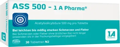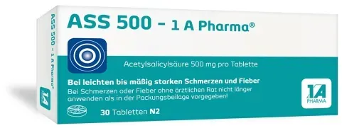 1 A Pharma - ASS 500 - 1 A Pharma Tabletten, 30 St - bei claras-apotheke.de - aus Yadore Produktdaten Dieses Angebot bietet eine sehr preiswerte Packung mit 30 Tabletten ASS 500-1A Pharma, perfekt für den Einstieg oder als Reiseapotheke. ![]() ![]()