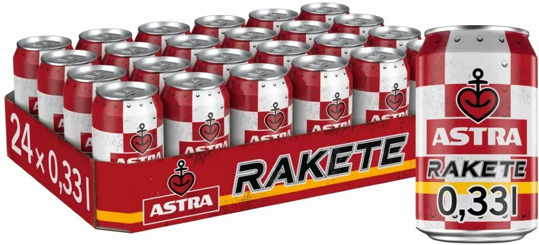 Zustand: Neu - 2,27 € / l - Biermischgetränke - ASTRA 22755 Hamburg - 17027 - EAN: 4101010007471 - Start frei für die perfekte Party: Astra Rakete. Mildherb bei starken 5,9% Alkohol und erfrischendem Citrus-Vodka Aroma. Geht ab! Vollmundiges, mildes Bier - aromatisiert mit erfrischendem Citrus-Vodka. Der Biermix vom Hamburger Kiez mit Herz & Anker. Mit viel Liebe gebraut im Herzen Hamburgs Lieferumfang: 24 x 330 ml Astra Rakete Biermischgetränk Dosen-Bier / 6 € Pfand zuzüglich zum Kaufpreis Das passende Bier, egal ob zur Party, zum Public Viewing, Festival, am Strand oder im Stadtpark. Die Astra Dose ist der perfekte Begleiter für jeden Anlass. - bei Amazon.de Für Fans des spritzigen Astra Rakete ist dieses 24er-Pack in der handlichen 0,33L Flasche ideal. ![]() ![]() Astra Rakete 24x0,33L