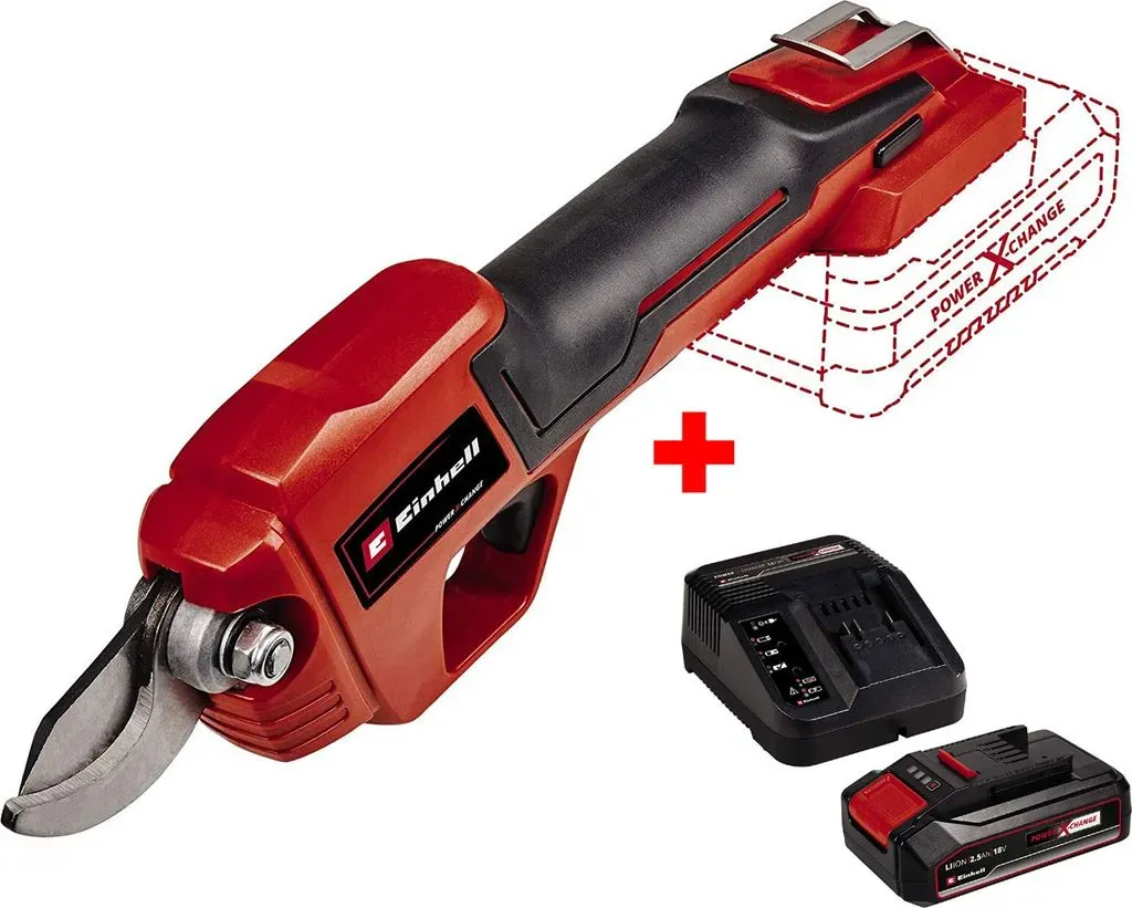 Garten- & Landschaftsbau Elektrogartenwerkzeug - EAN:4006825652727 - Vor Gebrauch Warnhinweise im Gefahrenfeld auf der Verpackung lesen. ------------------------------ Eigenschaften: Die Einhell Akku-Astschere GE-LS 18 Li-Solo ist ein leistungsstarkes Mitglied der flexiblen Power X-Change-Familie Die Astschere eignet sich zum Schneiden von Ästen bis zu einer Dicke von 28 mm Die hochwertigen Bypass-Klingen sind auf effiziente Schnittarbeiten ausgerichtet Ein Gürtelclip sorgt für optimalen Tragekomfort gerade in höheren Baumlagen Für die sichere Aufbewahrung mit geschlossener Klinge ist die Akku-Schere mit einem On-/Off-Schiebeschalter ausgestattet zum Aktivieren bzw. Deaktivieren der Schere sowie mit einer stabilen Plastikabdeckung für die Klinge Die Lieferung erfolgt ohne Power X-Change-Akku und ohne Ladegerät Diese sind separat erhältlich, zum Beispiel als praktisches Starter-Set. (3408300) - gefunden von Kelkoo Dieses Set ist empfehlenswert, da es die Astschere direkt mit einem 2,5 Ah Starterkit liefert und somit sofort einsatzbereit ist. ![]() ![]() Einhell Akku-Astschere GE-LS 18 Li solo inkl. 2,5 Ah Starterkit