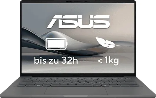 Notebooks Laptops Lifestyle Technik Computer Notebooks Zubehör - - Für's Homeoffice und unterwegs Der ASUS Zenbook A14 UX3407QA-QD290W Laptop 35,6 cm (14,0 Zoll), 16 GB RAM, 512 GB SSD, Snapdragon XSowohl im Berufsleben als auch im Privatleben ist der ASUS Zenbook A14 UX3407QA-QD290W Laptop 35,6 cm (14,0 Zoll), 16 GB RAM, 512 GB SSD, Snapdragon X das ideale Gerät.Leistungsstarker Snapdragon X-ProzessorWenn Sie viel Speicherkapazität für Apps und Dateien benötigen, dann kommt Ihnen die riesige 512 GB Festplatte entgegen. Die Snapdragon X-CPU mit einer Taktfrequenz von 2,9 GHz und die Qualcomm® Adreno TM GPU-Grafikkarte arbeiten flüssig Hand in Hand und verschaffen Ihnen ein positives Arbeitserlebnis.Mit Schnittstellen Verbindungen herstellenEine wichtige Frage ist auch: Wie stellen Sie eine Verbindung zu anderen Geräten her? Hierfür gibt es Schnittstellen. Dieses Modell besitzt folgende: 2x USB 3.2 Gen 2 Type-A, HDMI, USB 4.0. HDMI eignet sich zur übertragung von digitalen Audio- und Video-Formaten, sodass Sie über diese Schnittstelle z.B. einen externen Bildschirm anschließen können. Wenn Sie für die Datenübertragung eine kabellose Verbindung bevorzugen, können Sie auch auf Bluetooth zurückgreifen.Display mit 1.920 x 1.200 Pixel AuflösungDer Bildschirm weist eine Größe von 35,6 cm (14 Zoll) auf. Bei einer Auflösung von 1.920 x 1.200 Pixel liefert er gestochen scharfe Bilder.Die Highlights auf einen Blick:Betriebssystem: Windows 11 HomeProzessor: Snapdragon XGrafikkarte: ... Dieses Zenbook 14 mit AMD Ryzen 7 8840HS und 1TB SSD bietet eine starke Leistung für anspruchsvollere Aufgaben. ![]() ASUS Zenbook 14 90NB1271-M009Y0 - 35,6 cm (14') - AMD Ryzen 7 8840HS - 16 GB RAM - 1 TB SSD