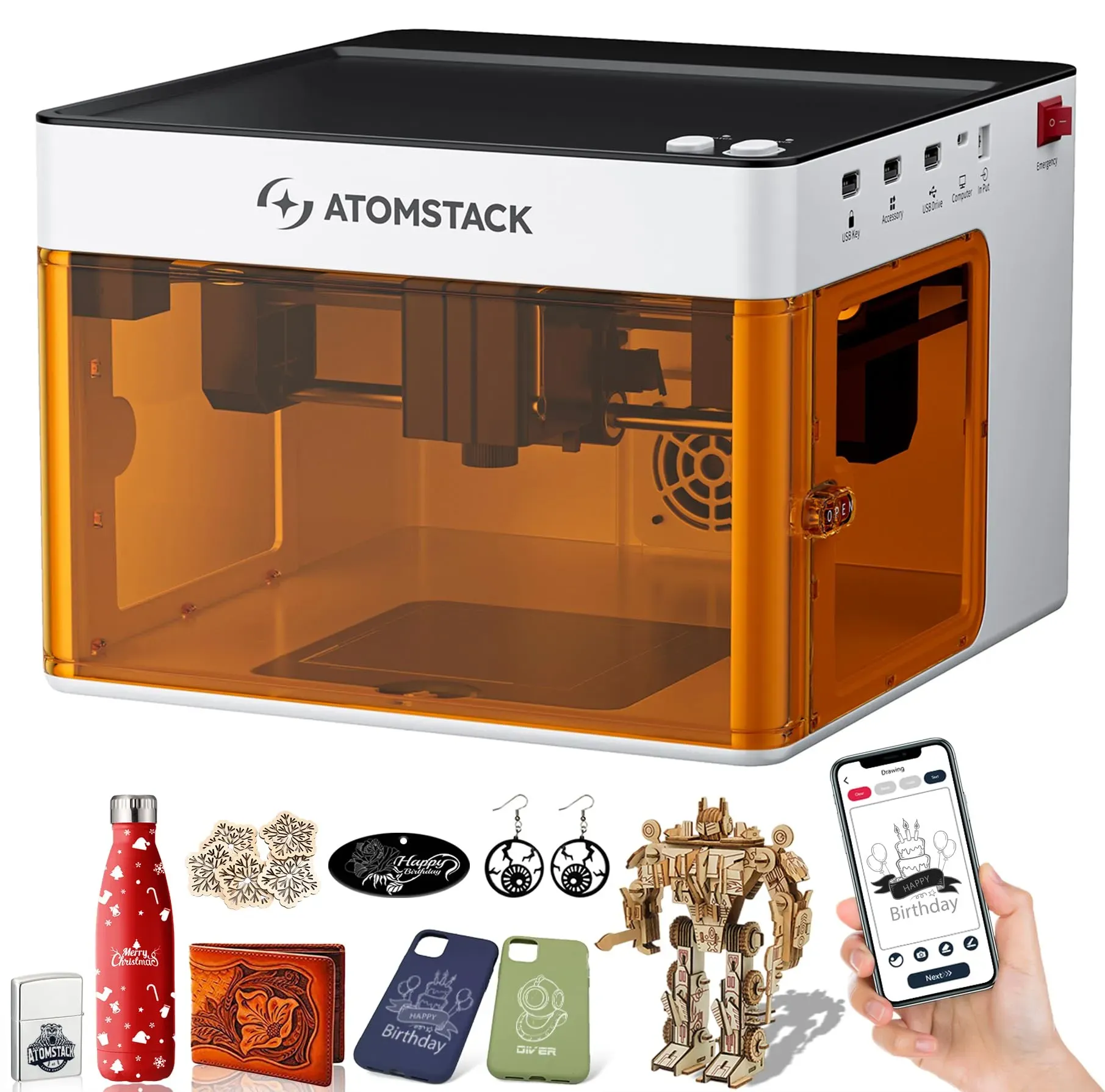 Auf Lager Versand durch AmazonATOMSTACK P1 Geschlossener Lasergravierer für Anfänger, Tragbarer Mini Lasergravurmaschine, 5000mW Laser Schneidemaschine, 10000mm/min Arbeitsgeschwindigkeit (Single-Laser-Version)