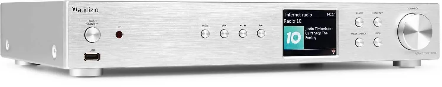 Verfügbarkeit: Auf Lager - Kategorie: Radios - Audizio - GTIN:8715693336467 - Internet Radio Tuner mit DAB+ Radio, FM Radio, Bluetooth, Spotify Connect, USB-MP3-Player. Das Audizio Adria ist der All-Rounder unter den Soundsystemen mit sehr guter Empfang und sehr guter Klang DAB Tuner für Stereoanlage : Der Audizio Adria passt mit seiner Breite von ca. 43,5 cm perfekt zu jedem gängigen Verstärker und anderen Systemen und ist damit bestens für das Nachrüsten Ihrer Hifi Anlage geeignet. Das W-lan internet-radio bietet die möglichkeit um aus einer Vielzahl von Radiosendern aus aller Welt zu wählen. über Wi-Fi können Sie ihn völlig drahtlos mit Ihrem Heimnetzwerk verbinden. Radio Tuner für Stereoanlage Digital : Dieser Wlan-Radio Tuner kann noch weiter ausgebaut werden, denn er verfügt über einen optischen Eingang (Toslink) und einen RCA-Koaxial-Eingang. Internetradio und DAB Tuner für Hifi Anlage mit Spotify-Radio: Mit Spotifiy Connect können Sie Ihre Wiedergabelisten mittels Bluetooth direkt über das Gerät oder Fernbedienung steuern - 135,92 Euro bei Amazon Marketplace CE - gefunden von billiger.de ![]() ![]() Audizio Adria - Internetradio WLAN Radio mit Bluetooth, DAB Tuner für HiFi Anlage, Spotify Connect, HiFi-Tuner, Internet Radio, Digitalradio, USB, AUX, RCA Out, Optical, inkl. Fernbedienung - Silber