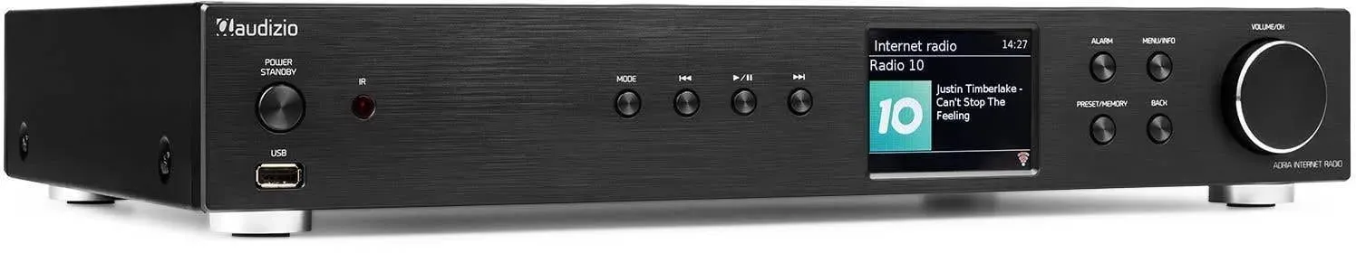 Verfügbarkeit: Auf Lager - Kategorie: Tuner - Audizio - GTIN:8715693336474 - Der Audizio Adria Hifi Receiver ist der Allrounder unter den Soundsystemen. Internet Radio Tuner, DAB und DAB+ Radio, FM Radio, Bluetooth, Spotify Connect, USB-MP3-Player. All das ist mit dem Adria möglich. Das Audizio Adria Wlan Radio mit DAB Tuner passt mit seiner Breite von ca. 43,5 cm perfekt zu jedem gängigen Verstärker und anderen Systemen und ist damit bestens für das Nachrüsten Ihrer Stereoanlage geeignet. über den Internet Receiver können Sie zum Beispiel aus einer Vielzahl von Radiosendern aus aller Welt wählen. Da er über Wlan verfügt, können Sie ihn völlig drahtlos mit Ihrem Heimnetzwerk verbinden. Receiver Hifi mit optischen und koaxialen digitalen Ausgängen sowie RCA- und 3,5-mm-Analoganschlüssen verwandelt der Internetradio Adapter jede Stereoanlage in ein Digital Radio. DAB Adapter Stereoanlage mit Farbdisplay für einfache Navigation, Sleep-Timer und Dual-Alarm für Komfort €“ steuern Sie alles bequem mit der mitgelieferten Fernbedienung. - 135,92 Euro bei Amazon Marketplace CE - gefunden von billiger.de ![]() ![]() Audizio Adria schwarz