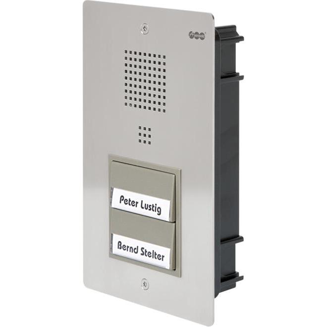 2 Händlerangebote bei billiger.de - Kategorie: Türsprechanlagen - Auerswald - Betrieb am analogen Nebenstellenanschluss einer Telefonanlage von Auerswald und anderer Hersteller 1bis 4 Klingeltaster (TFS-Dialog 301, ...302, ...303, ...304), wahlweise auch z. B. als Lichttaster verwendbar Programmierung der Rufnummern und Grundfunktionen über Telefon Zwei Empfindlichkeitspegel für laute und leise Umgebungen Verschleißreie Schaltkontakte für Türöffner, Klingel und Licht (Klingeltrafo erforderlich) Strom sparende, verschleißfreie LED-Beleuchtung, stufenlos einstellbarer Farbton (kalt-weiß bis warm-gelb) Zusätzliche Schaltmöglichkeiten durch optionale a/b-Schaltmodule - GTIN:4019377901618 Dieses Modell bietet zwei Taster in Edelstahl-Ausführung für Unterputzmontage, was eine hochwertige Optik verspricht. ![]() Auerswald Klingel + Türsprechanlage, TFS Dialog 302 / 2 Taster / Edelstahl / für Unterputzmontage/Betrieb an analoge Nebenstellen / LE... (Kabelgebunden)